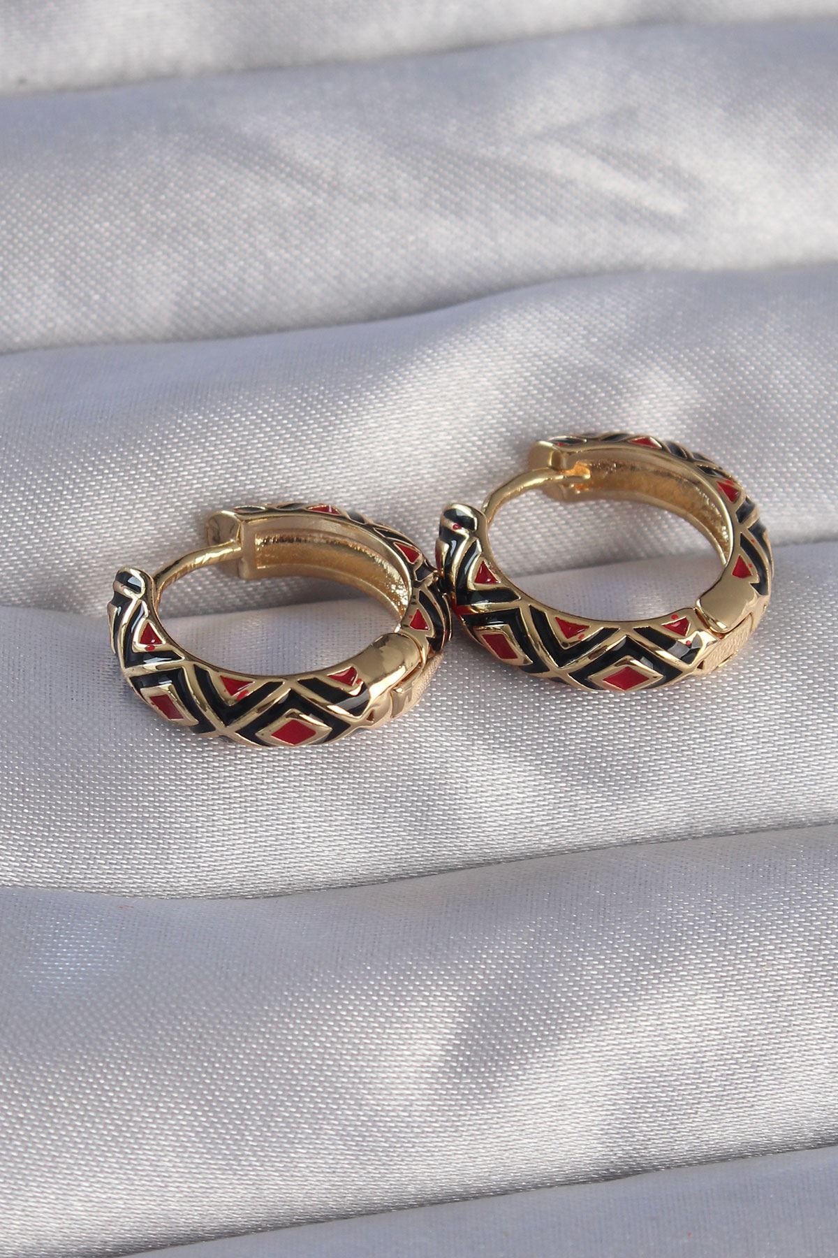 Pirinç Gold Renk Siyah Etnik Desenli Halka Küpe - TJ-BKP9073