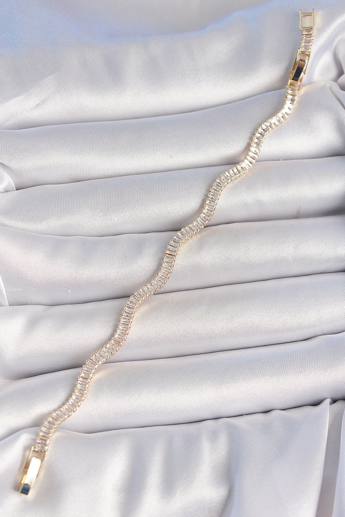 Pirinç Gold Renk Su Yolu Zirkon Taşlı Model Kadın Bileklik - TJ-BB6926