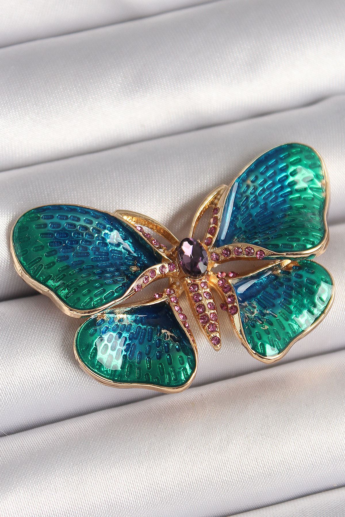 Pirinç Gold Renk Turquaz Model Zirkon Taş Detaylı Kelebek Model Kadın Broş - TJ-BR429
