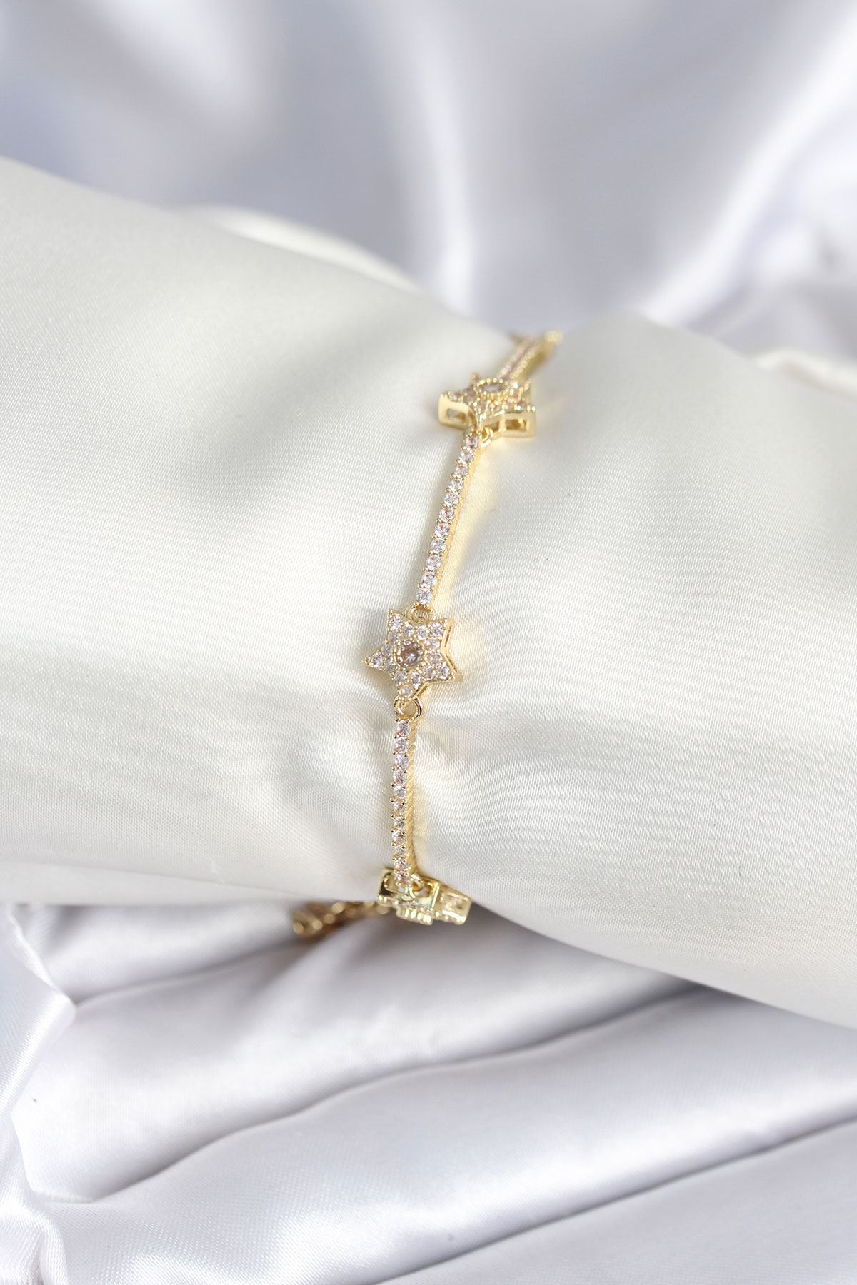 Pirinç Gold Renk Yıldız Model Kadın Bileklik - TJ-BB7986