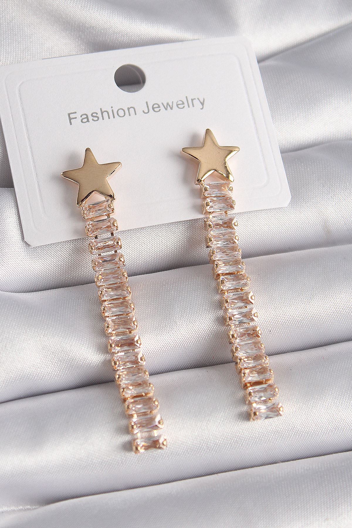 Pirinç Gold Renk Yıldız Model Su Yolu Zirkon Taşlı Kadın Küpe - TJ-BKP9626