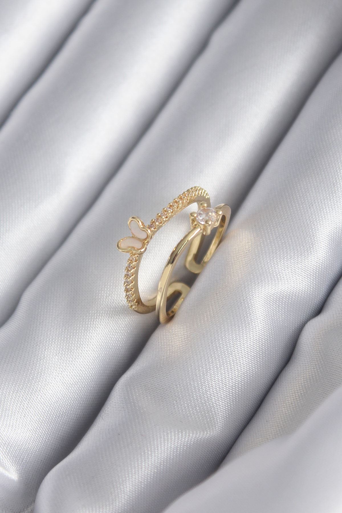 Pirinç Gold Renk Zirkon Taş Detay Kelebek Model Kadın Yüzük - TJ-BYK2933
