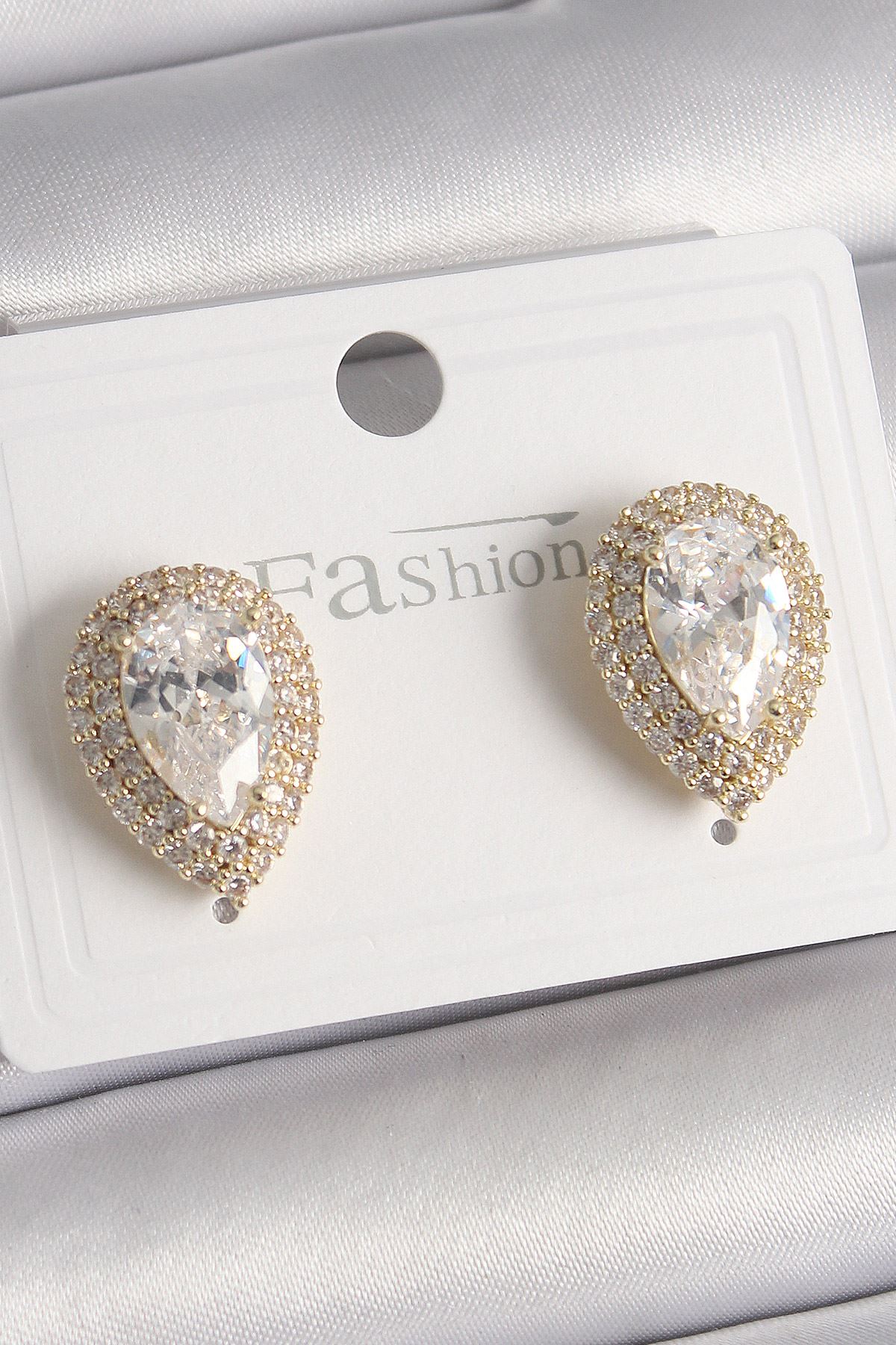 Pirinç Gold Renk Zirkon Taşlı Damla Model Kadın Küpe - TJ-BKP9917