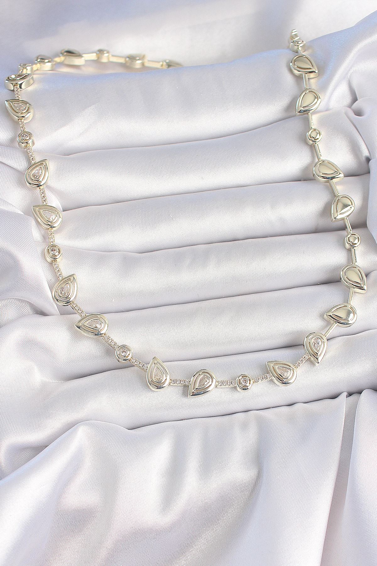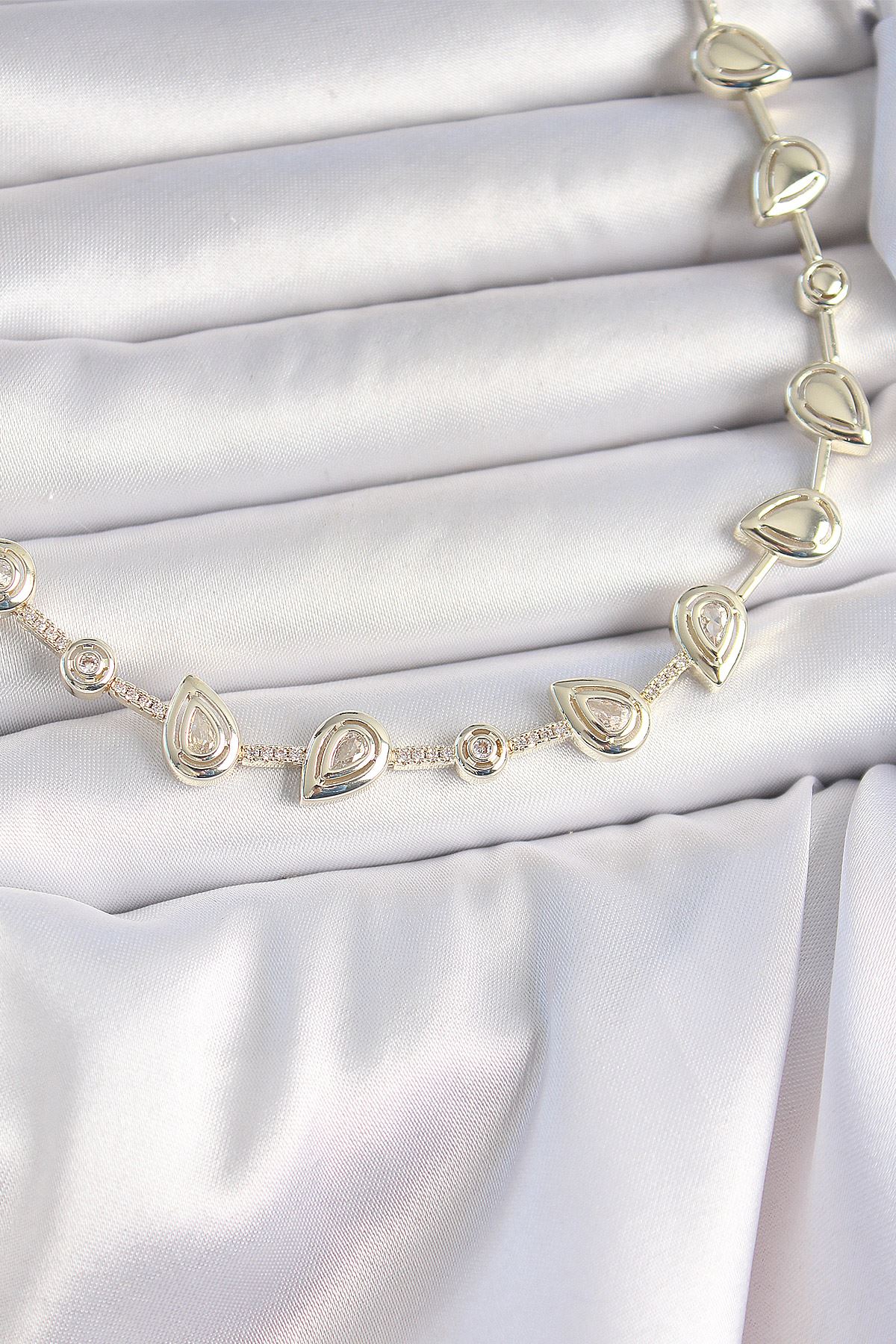 Pirinç Gold Renk Zirkon Taşlı Damla Model VIP Seri Exclusive Kadın Kolye - TJ-BKO10006