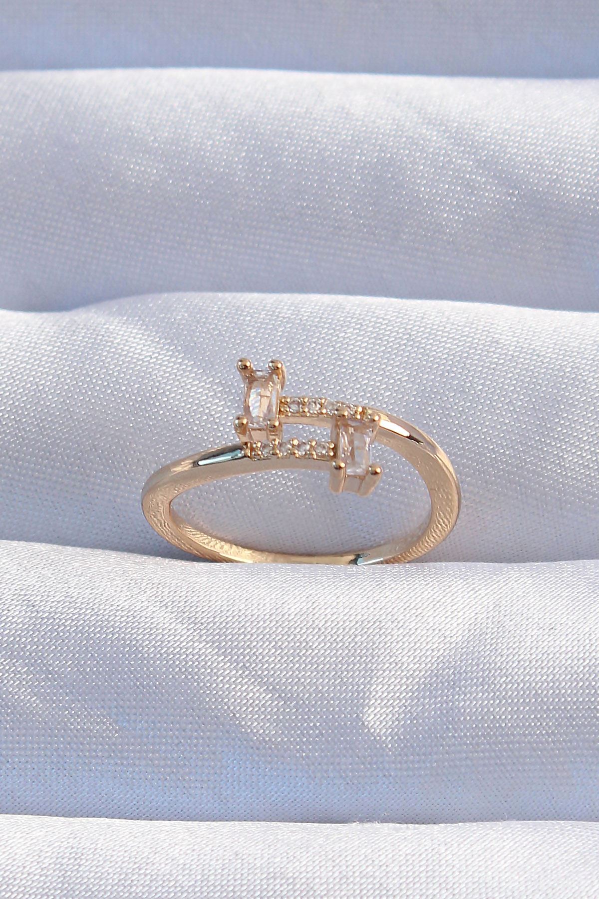 Pirinç Gold Renk Zirkon Taşlı Geometrik Ayarlanabilir Yüzük - TJ-BYK3239