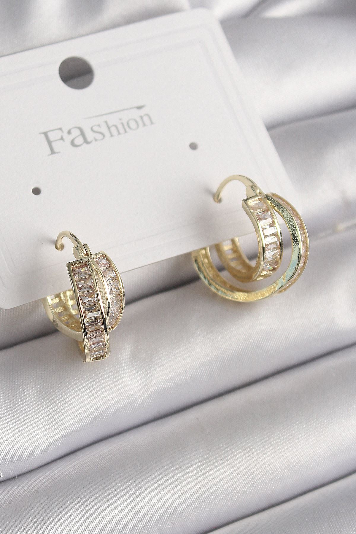 Pirinç Gold Renk Zirkon Taşlı Halka Model Kadın Küpe - TJ-BKP10001