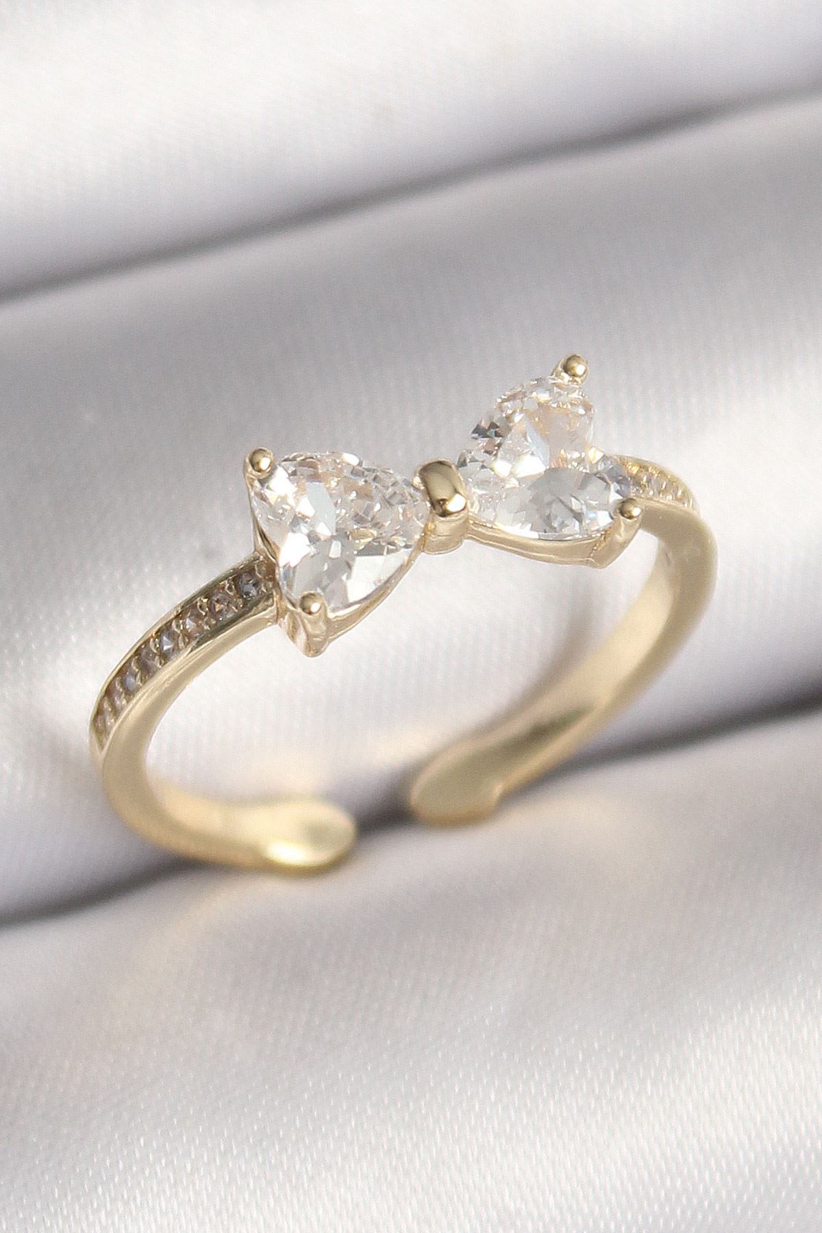 Pirinç Gold Renk Zirkon Taşlı Kalp Fiyonk Model Kadın Yüzük - TJ-BYK3640