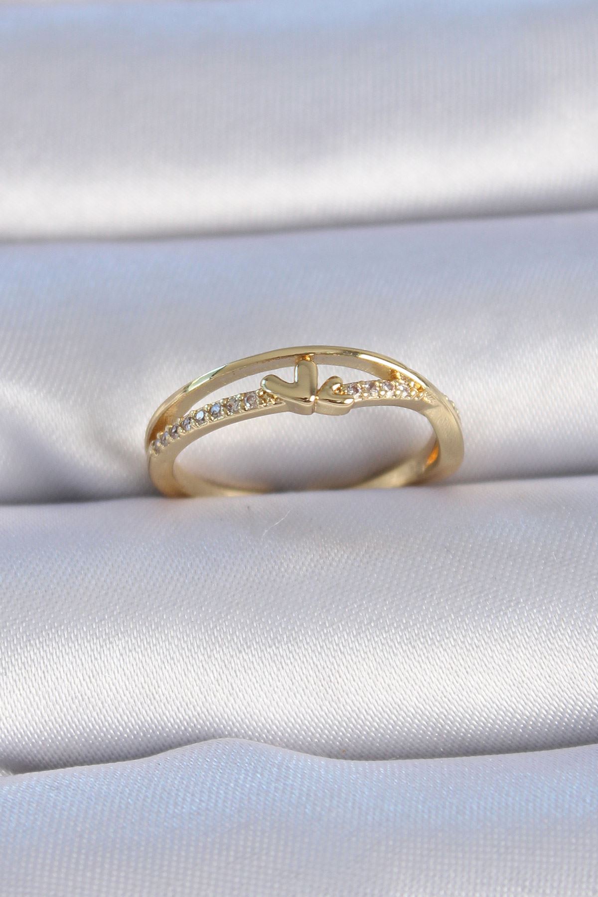 Pirinç Gold Renk Zirkon Taşlı Kalp Model Kadın Yüzük - TJ-BYK3302