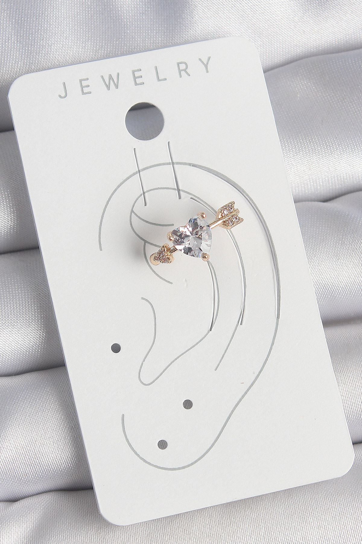 Pirinç Gold Renk Zirkon Taşlı Kalp Ok Model Kadın Kıkırdak Küpe - TJ-BKP10576