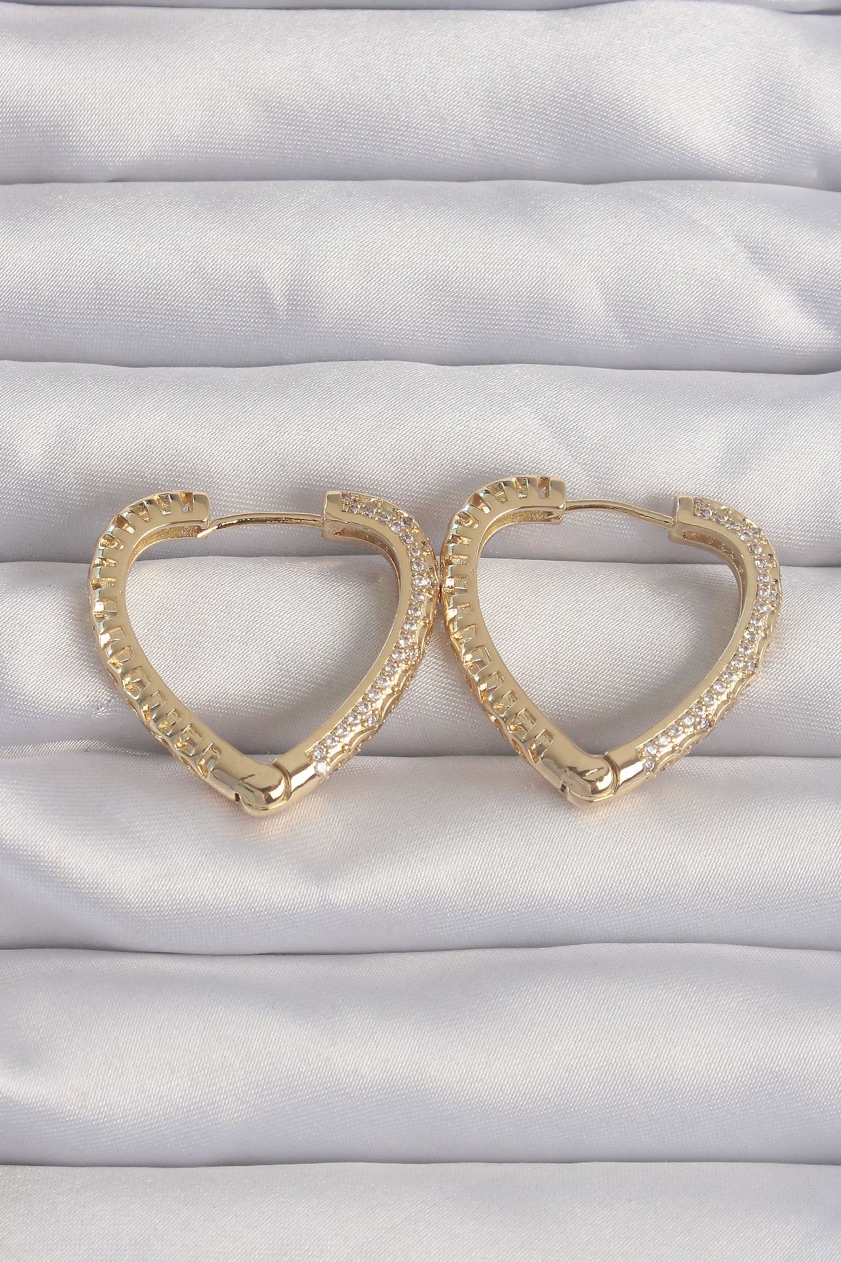 Pirinç Gold Renk Zirkon Taşlı Motifli Kalp Küpe - TJ-BKP9285