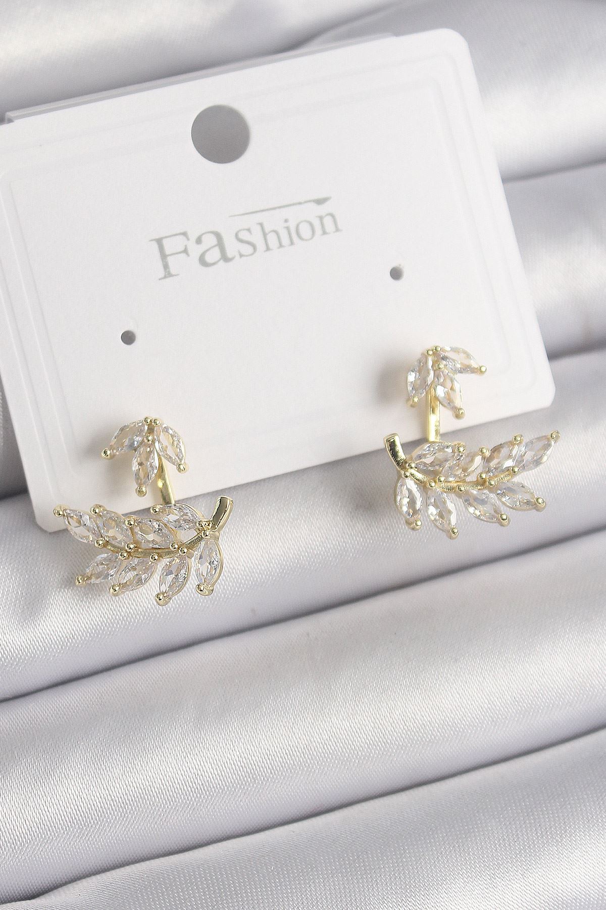 Pirinç Gold Renk Zirkon Taşlı Yaprak Model Kadın Küpe - TJ-BKP9866