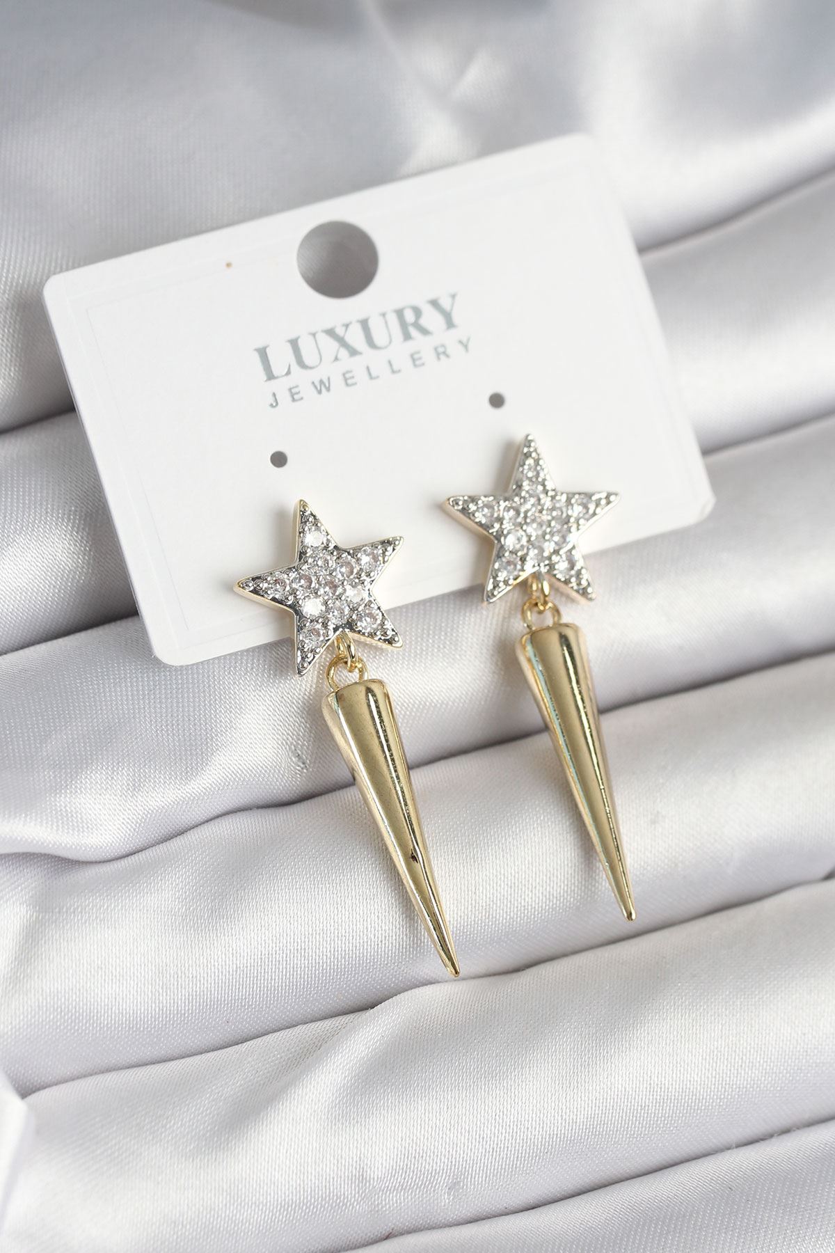 Pirinç Gold Renk Zirkon Taşlı Yıldız Model Çivi Kadın Küpe - TJ-BKP11240