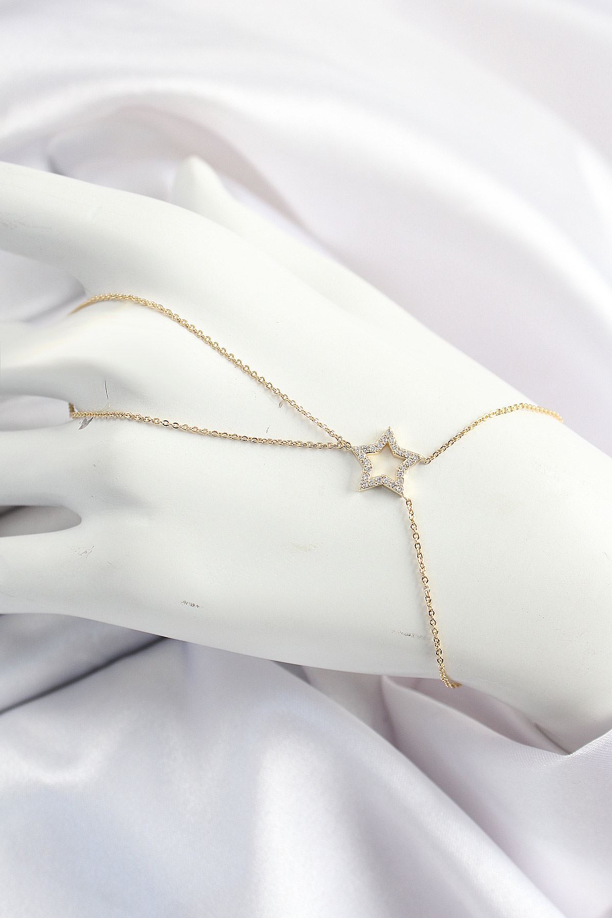Pirinç Gold Renk Zirkon Taşlı Yıldız Model Şahmeran - TJ-SN678