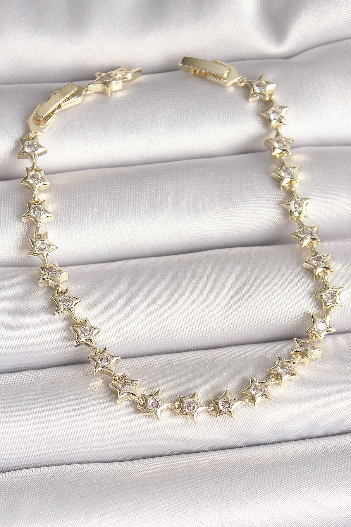Pirinç Gold Renk Zirkon Taşlı Yıldız Model VIP Seri Kadın Bileklik - TJ-BB6880