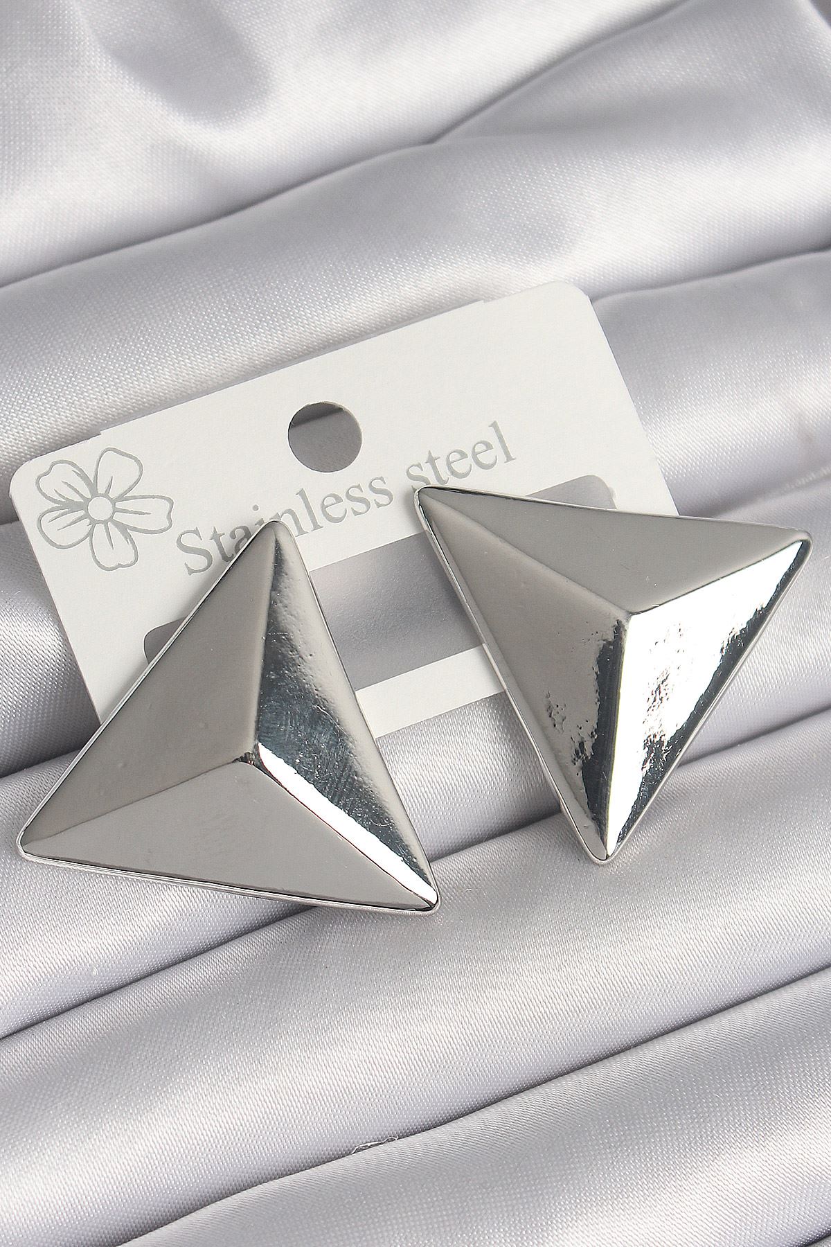 Pirinç Gümüş Renk 3D Üçgen Model Kadın Küpe - TJ-BKP10230