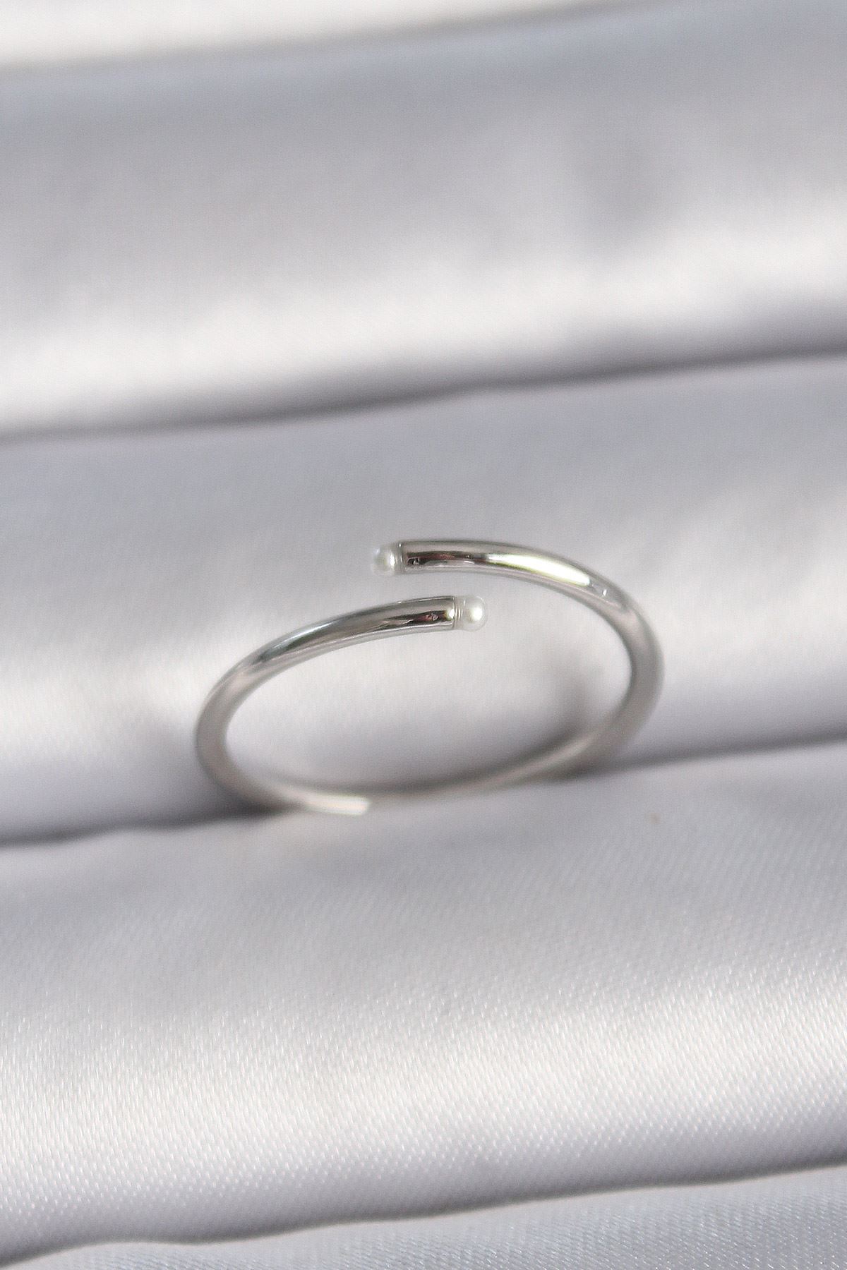 Pirinç Gümüş Renk Ayarlanabilir İnci Detay Kadın Yüzük - TJ-BYK3423