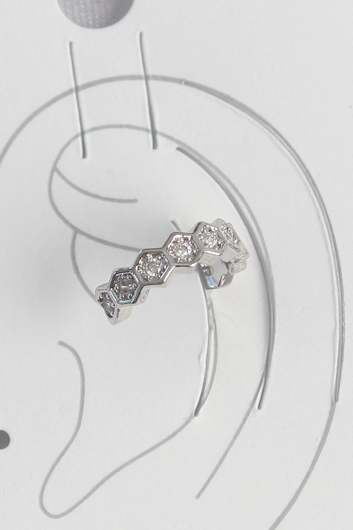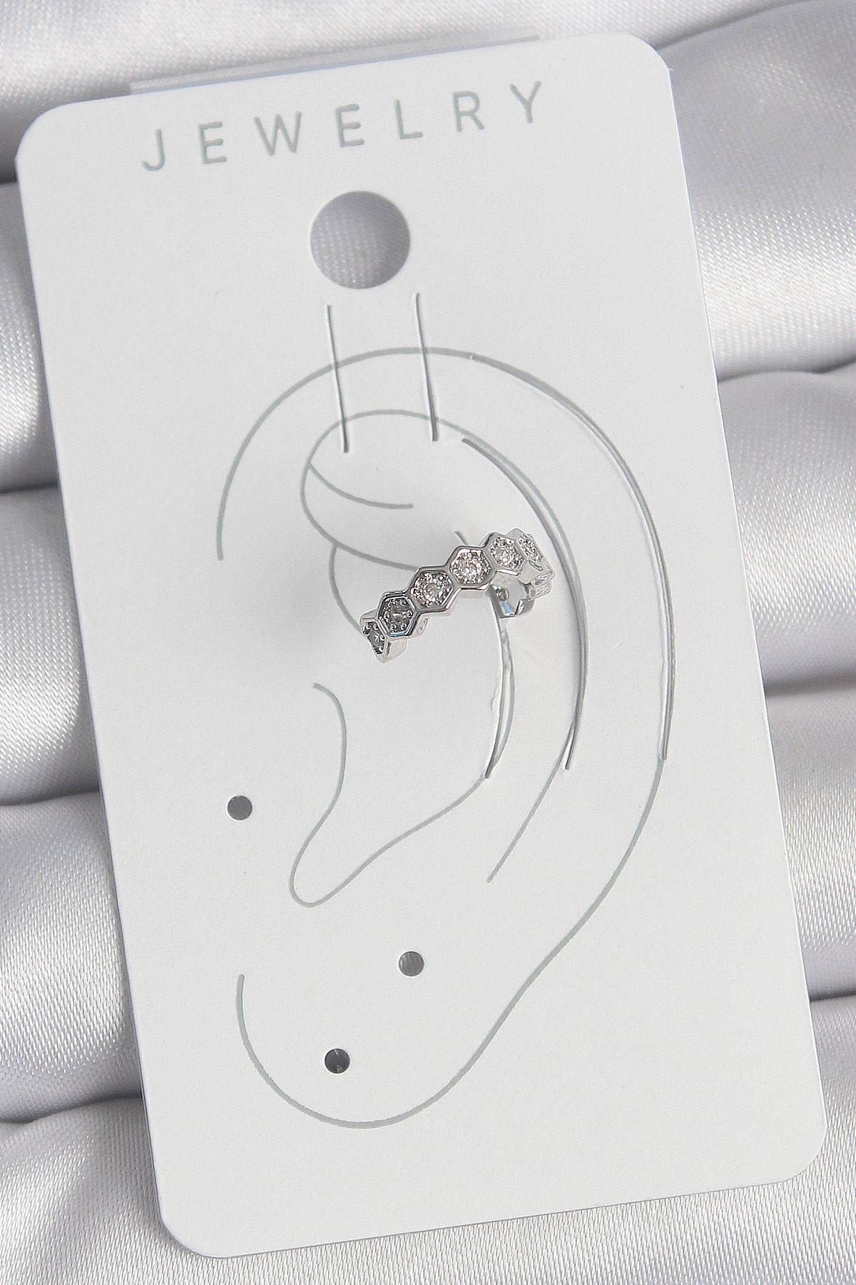 Pirinç Gümüş Renk Bal Peteği Model Zirkon Taşlı Kadın Kıkırdak Küpe - TJ-BKP10568