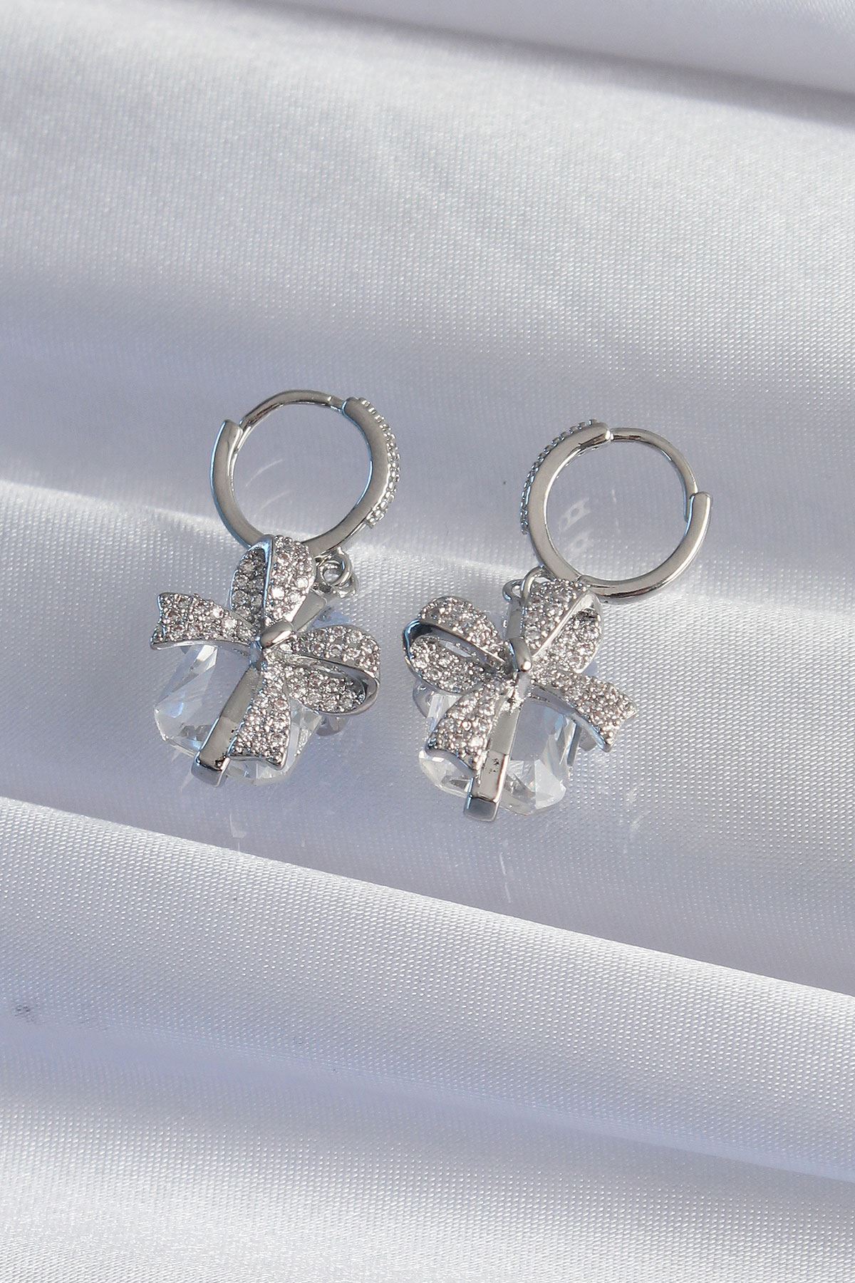 Pirinç Gümüş Renk İri Zirkon Taşlı Fiyonk Model Halka Küpe - TJ-BKP9312