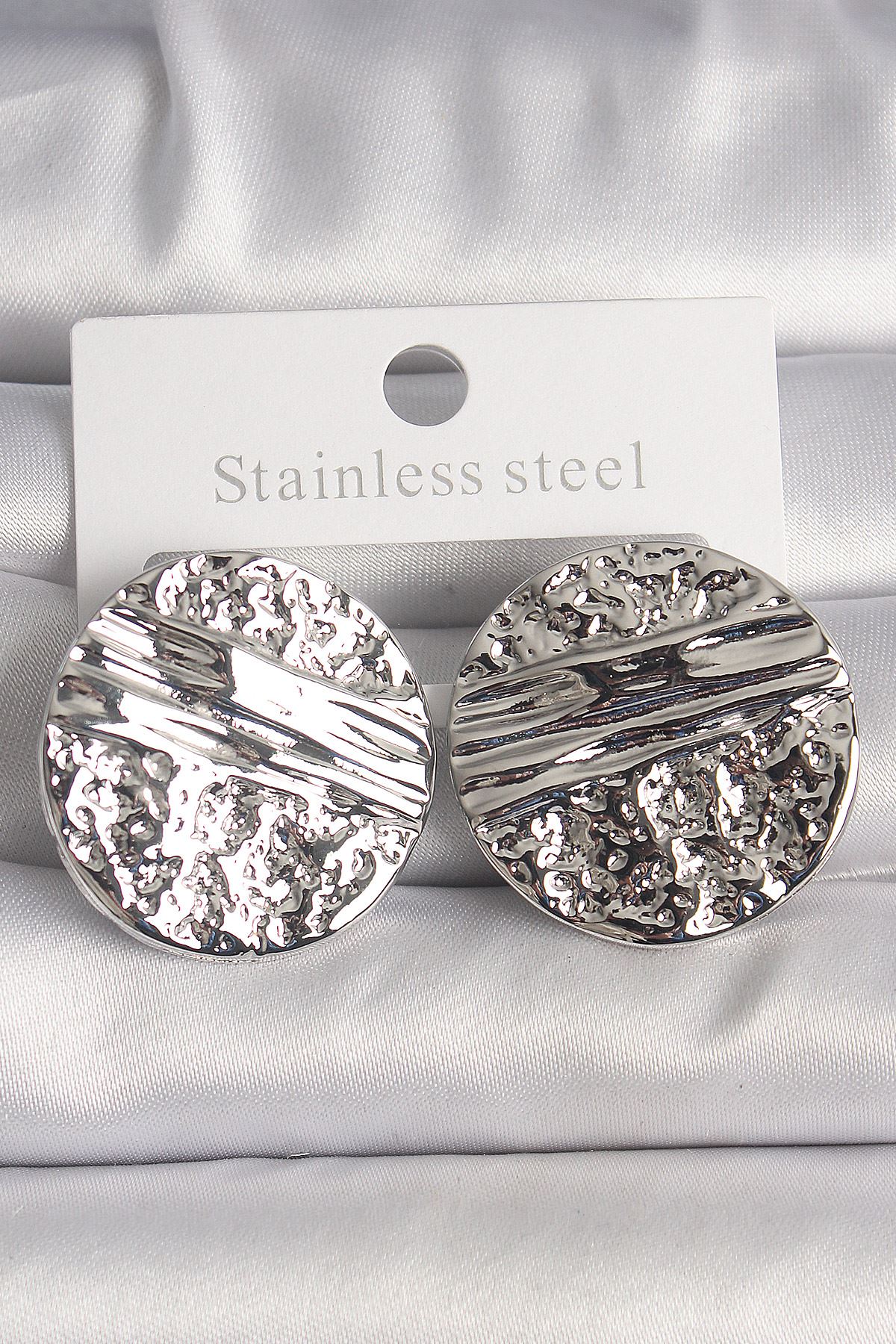 Pirinç Gümüş Renk İşlemeli Daire Plaka Model Kadın Küpe - TJ-BKP10152