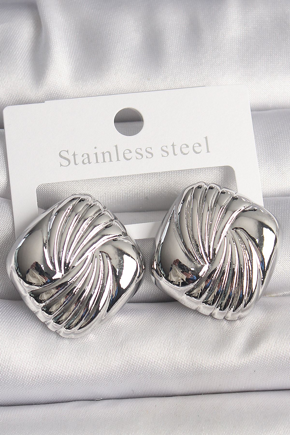 Pirinç Gümüş Renk İşlemeli Kare Model Kadın Küpe - TJ-BKP10156