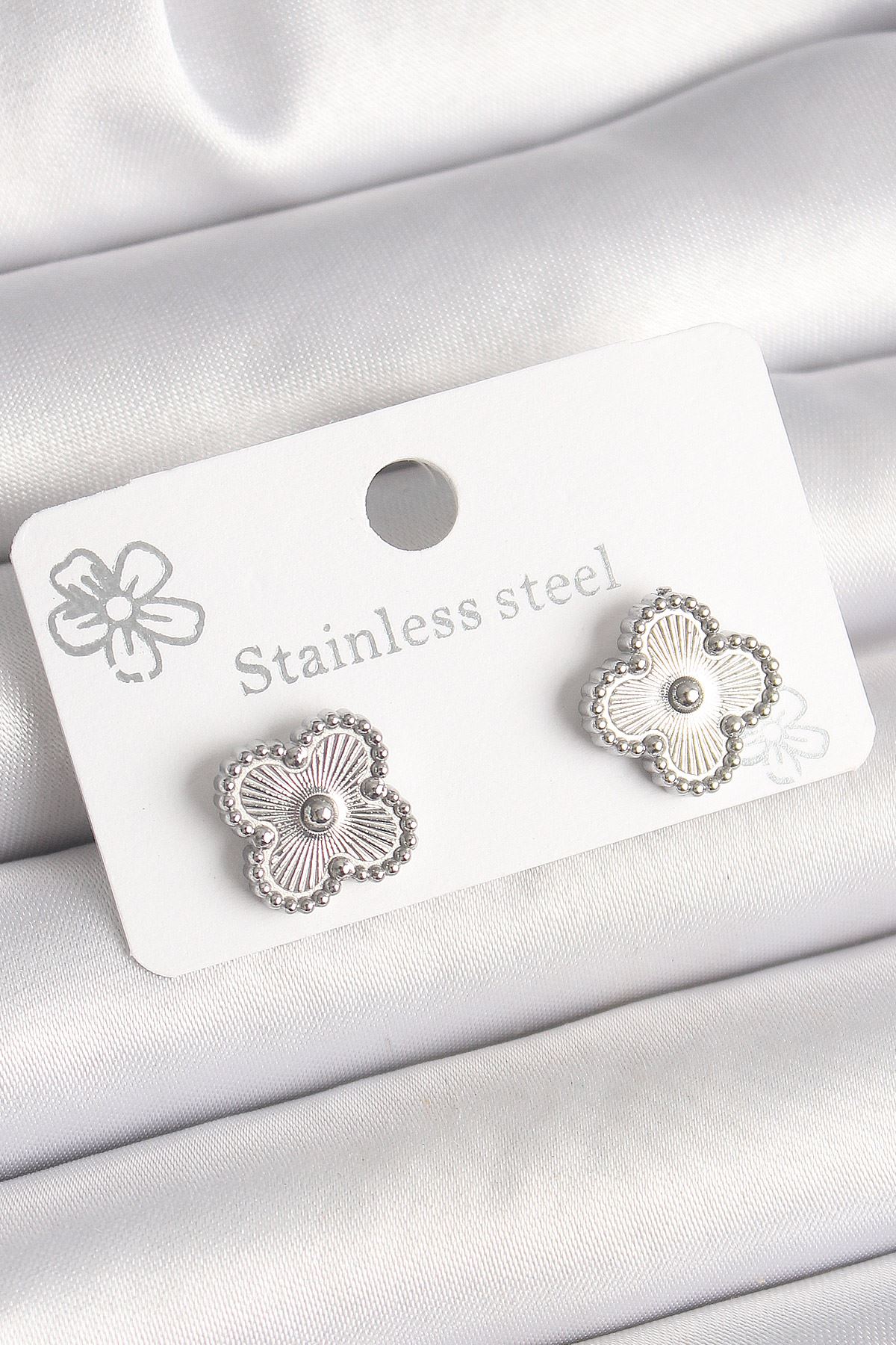 Pirinç Gümüş Renk İşlemeli Yonca Model Kadın Küpe - TJ-BKP10358