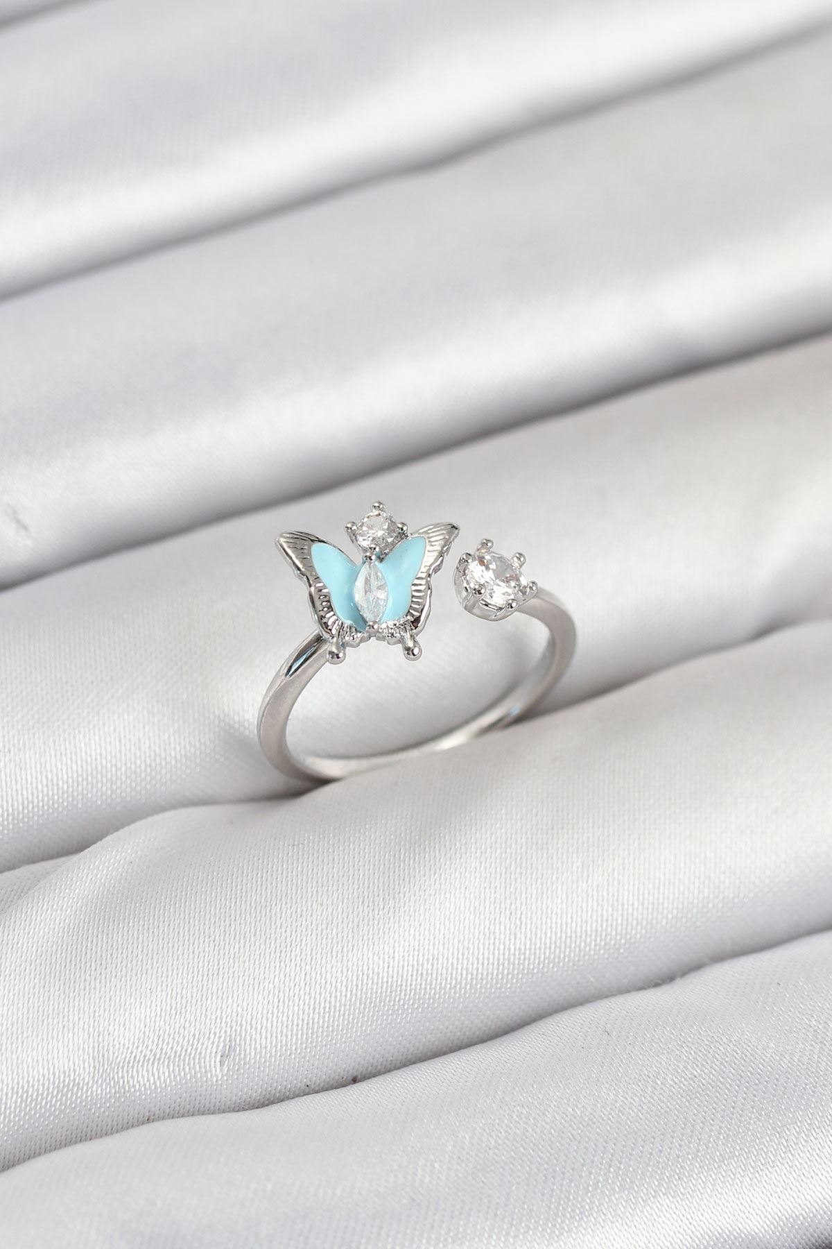 Pirinç Gümüş Renk Kelebek Model Kadın Yüzük - TJ-BYK3865