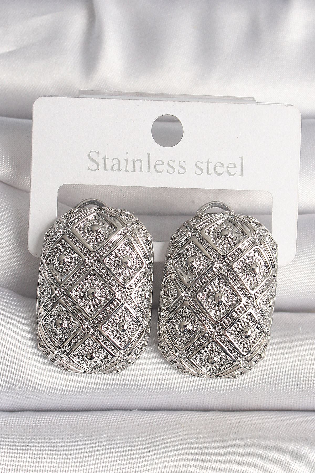 Pirinç Gümüş Renk Motif İşlemeli Kadın Küpe - TJ-BKP10142