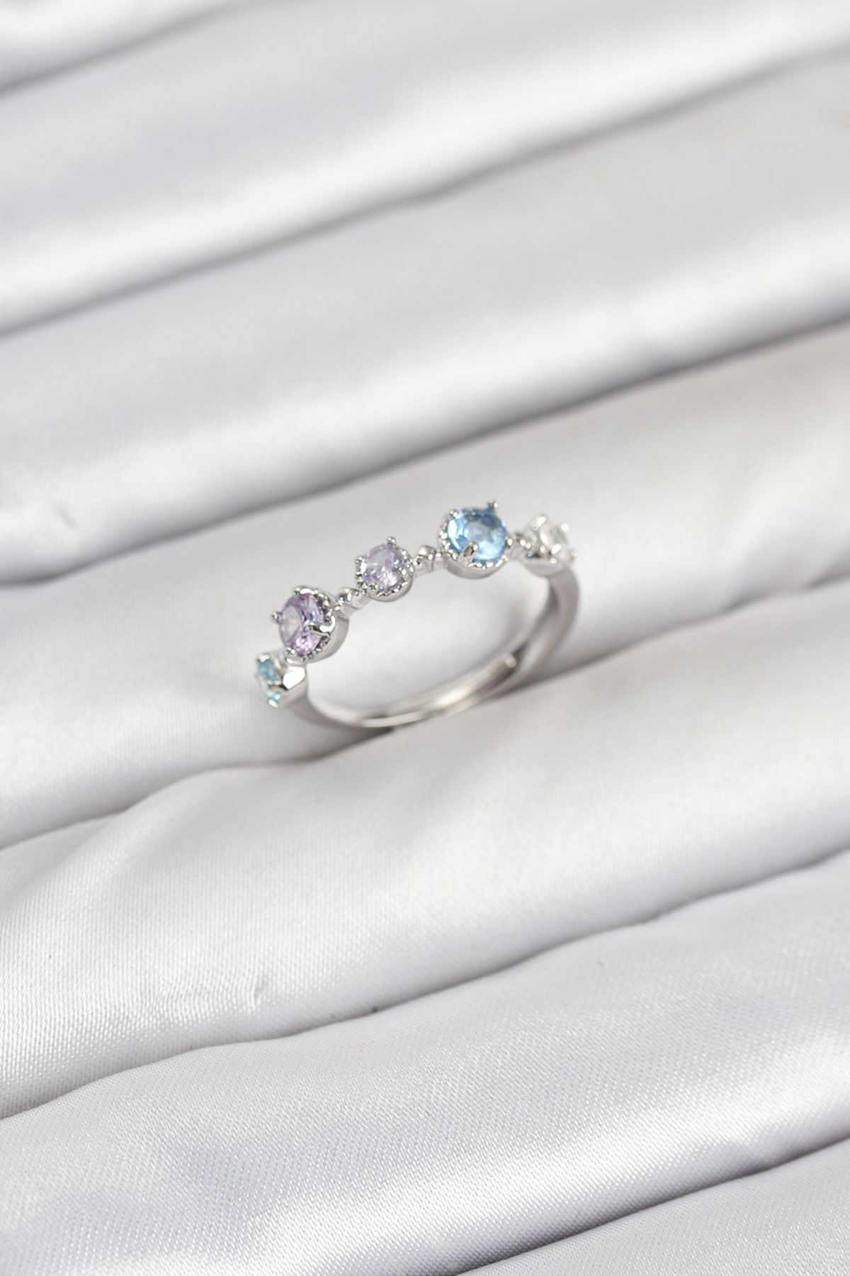Pirinç Gümüş Renk Renkli Zirkon Taşlı Kadın Yüzük - TJ-BYK3867