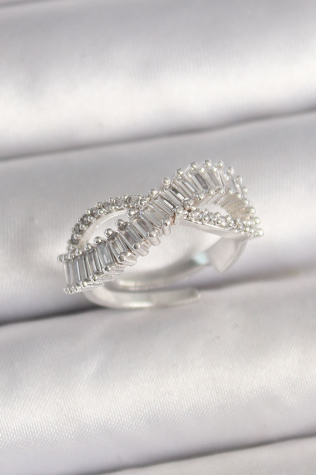 Pirinç Gümüş Renk Su Yolu Zirkon Taşlı Sonsuzluk Model Ayarlanabilir Kadın Yüzük - TJ-BYK3694