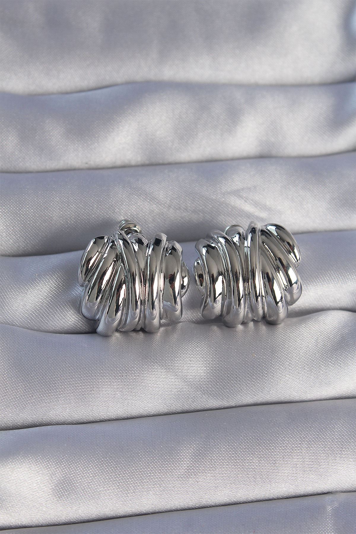 Pirinç Gümüş Renk Tırtıklı Bombe Model Küpe - TJ-BKP9088