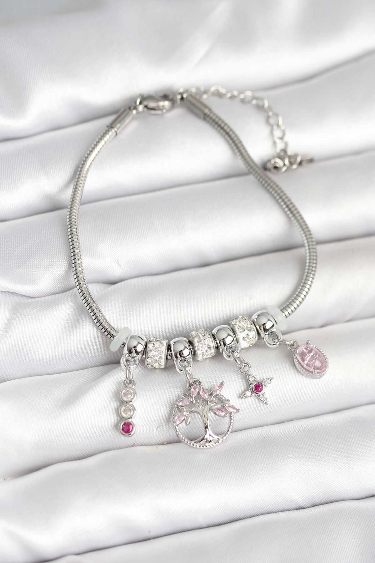 Pirinç Gümüş Renk Yaşam Ağacı Charmlı Kadın Bileklik - TJ-BB7990