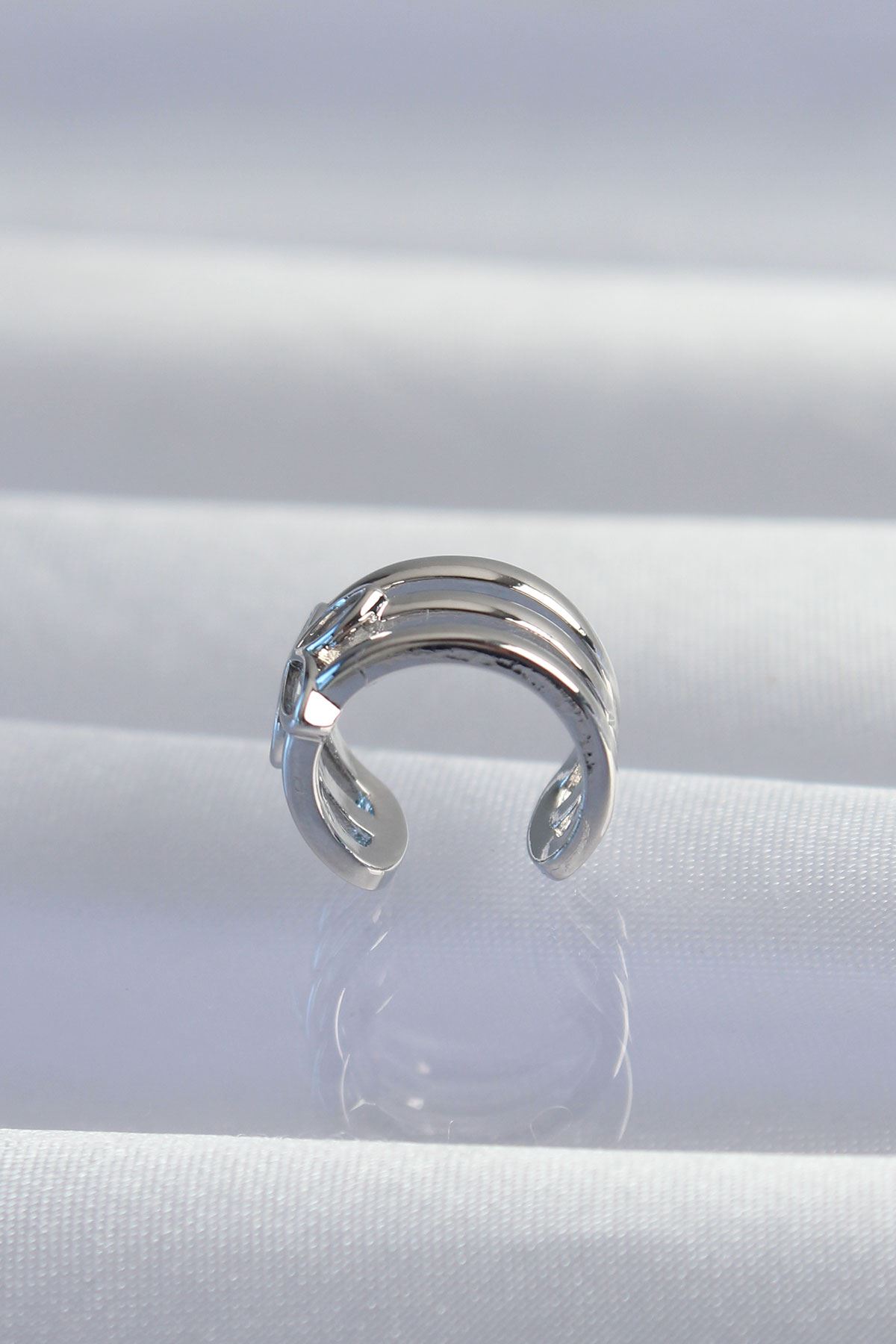 Pirinç Gümüş Renk Yonca Earcuff Küpe - TJ-BKP9330