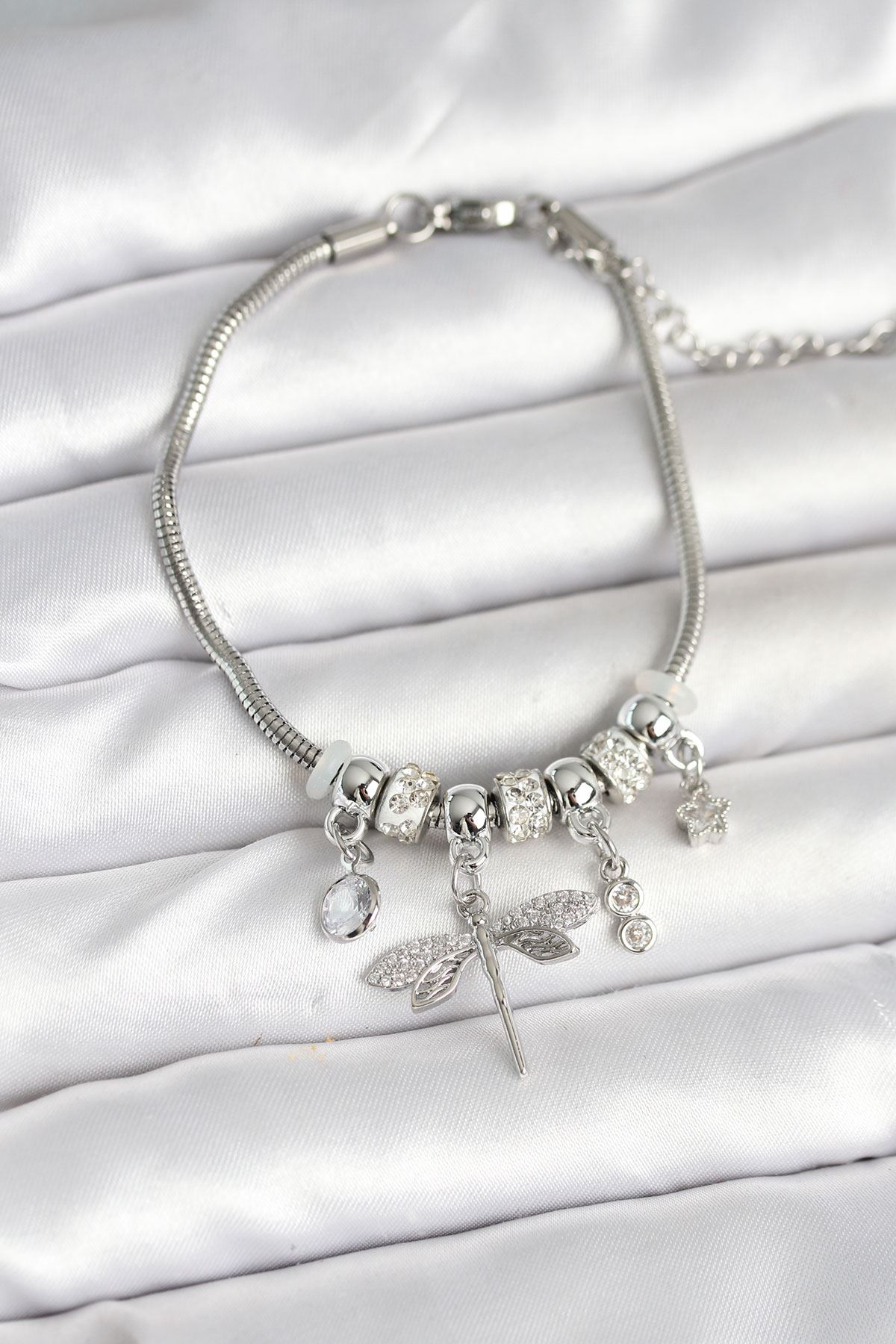 Pirinç Gümüş Renk Yusufçuk Charmlı Kadın Bileklik - TJ-BB7996
