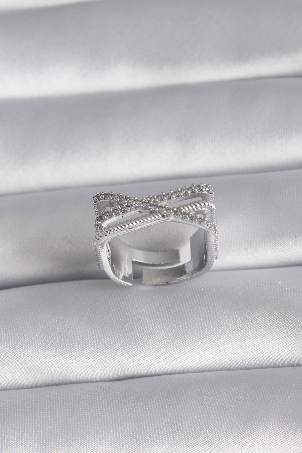 Pirinç Gümüş Renk Zirkon Taş Detay Kadın Yüzük - TJ-BYK3028