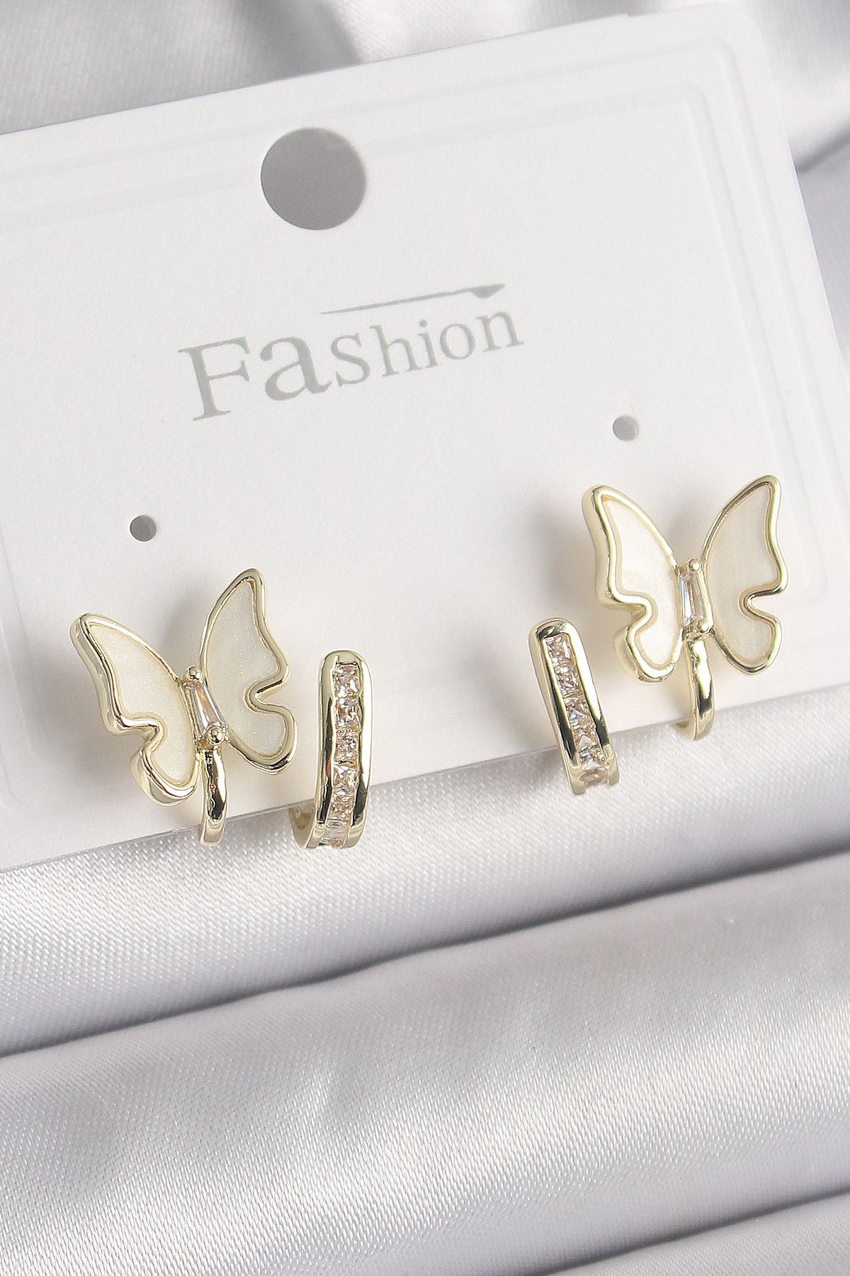Pirinç Gümüş Renk Zirkon Taş Detaylı Beyaz Sedefli Kelebek Model Kadın Küpe - TJ-BKP9868