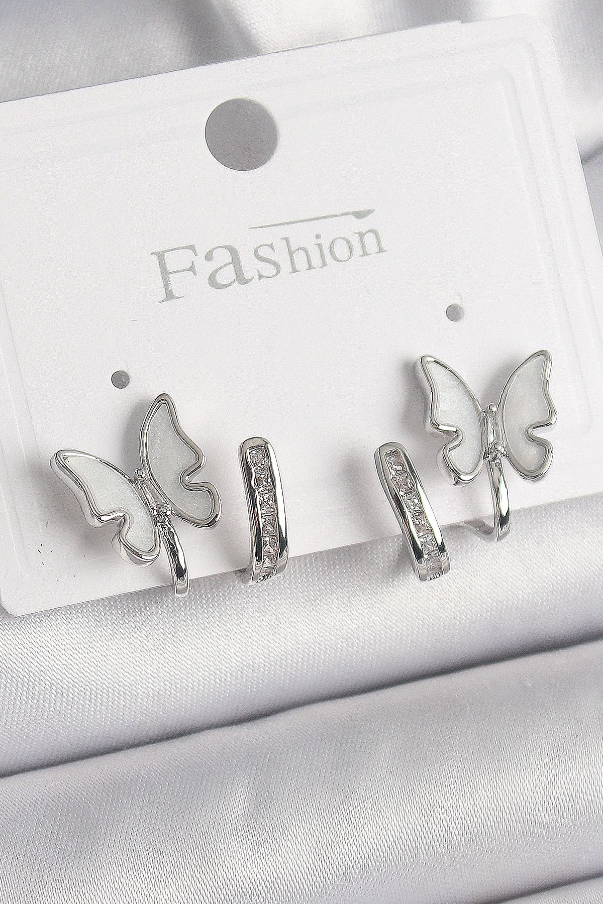 Pirinç Gümüş Renk Zirkon Taş Detaylı Beyaz Sedefli Kelebek Model Kadın Küpe - TJ-BKP9869