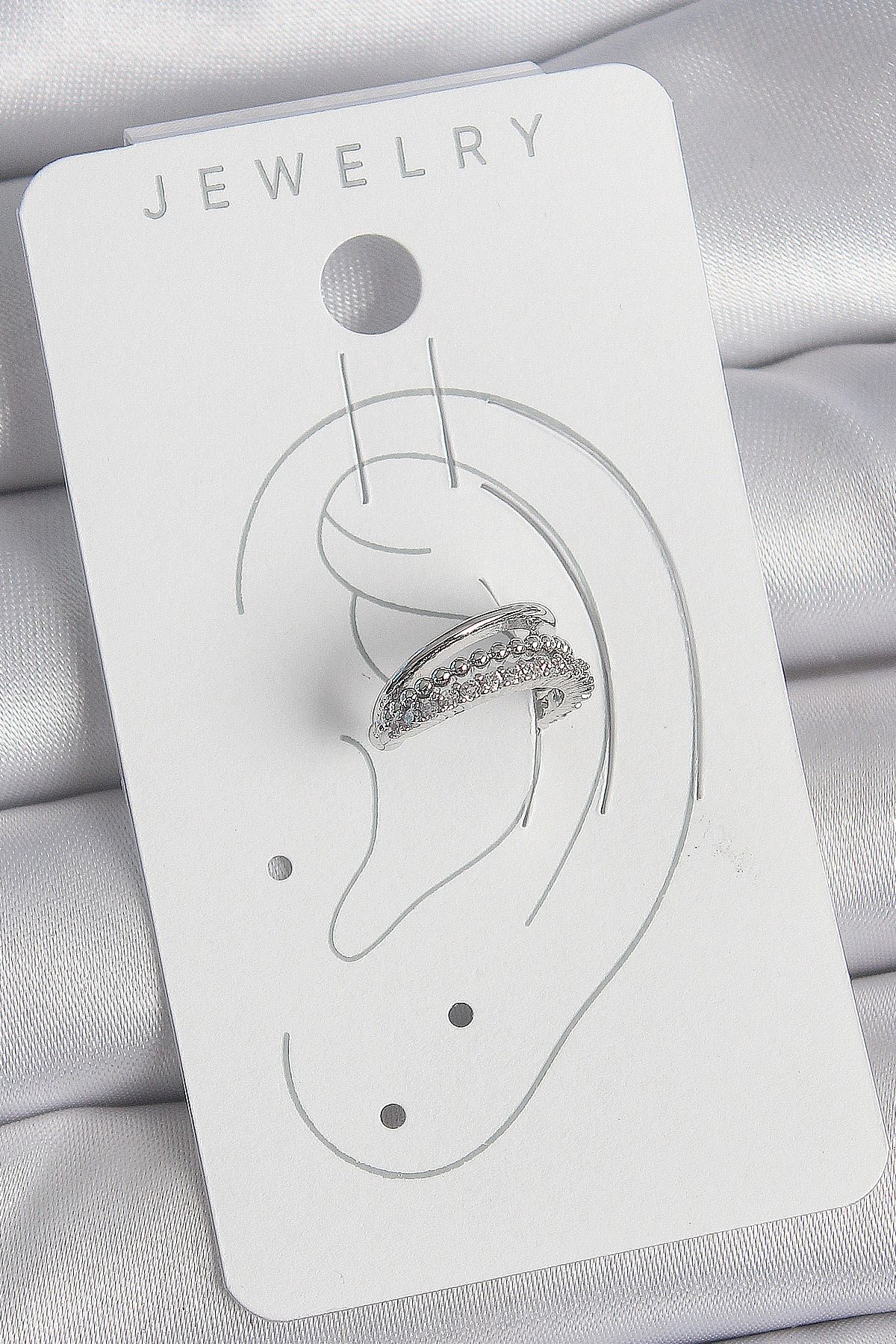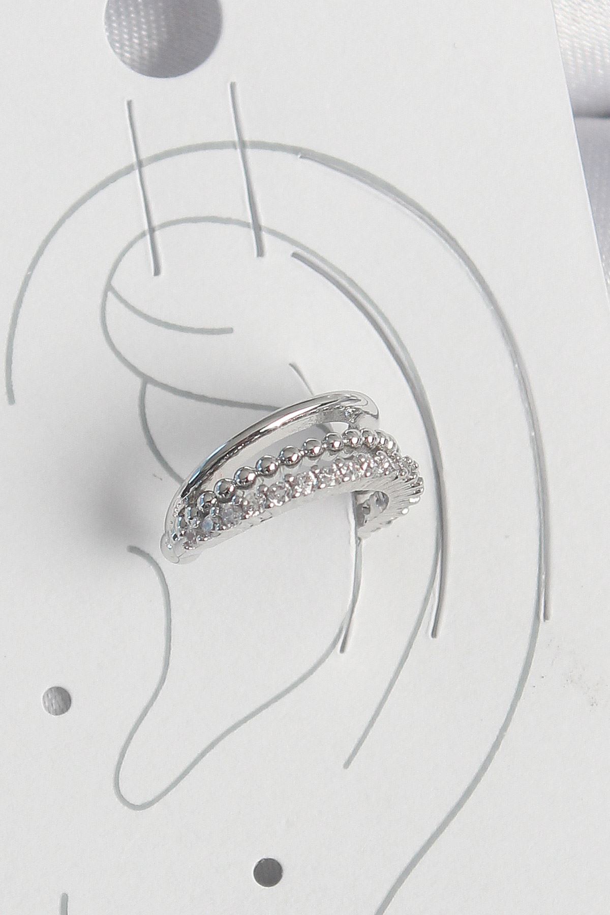 Pirinç Gümüş Renk Zirkon Taşlı 3'Lü Sıralı Kadın Kıkırdak Küpe - TJ-BKP10554