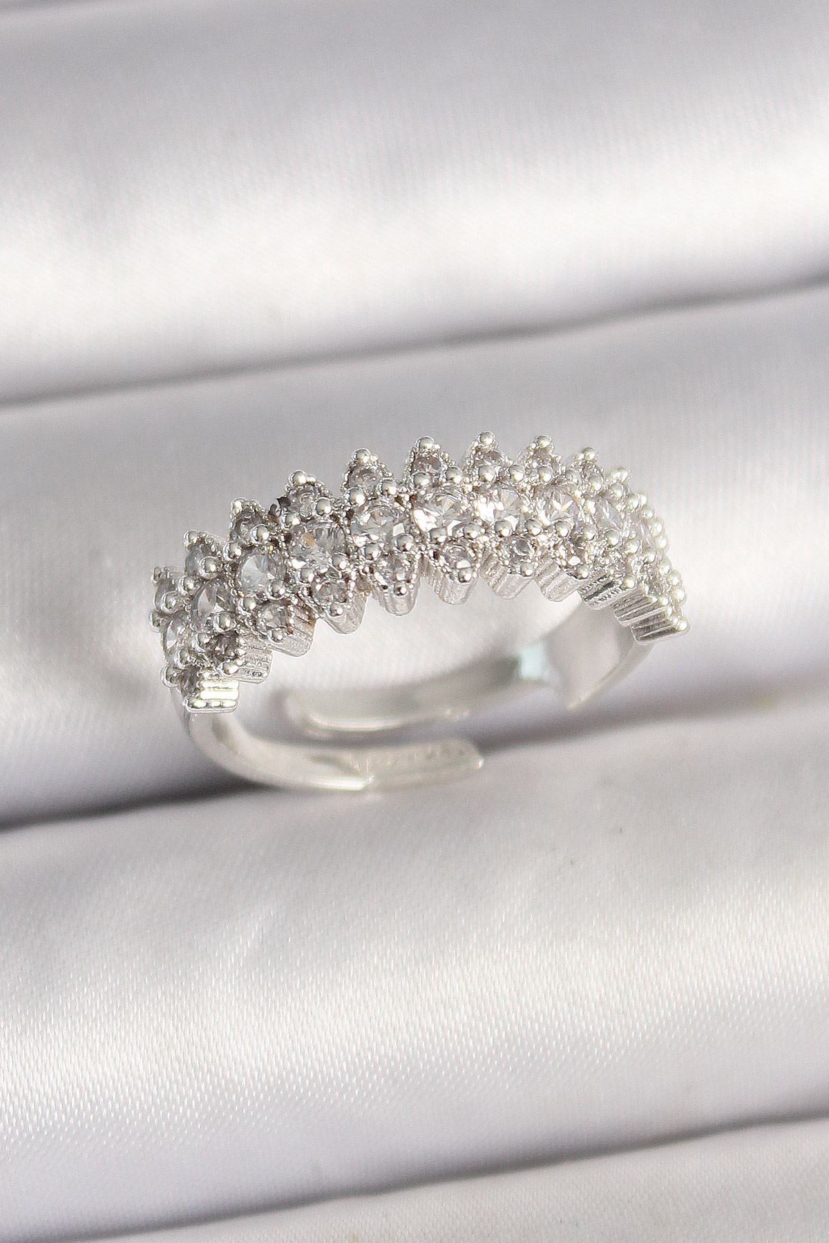 Pirinç Gümüş Renk Zirkon Taşlı Ayarlanabilir Kadın Yüzük - TJ-BYK3688
