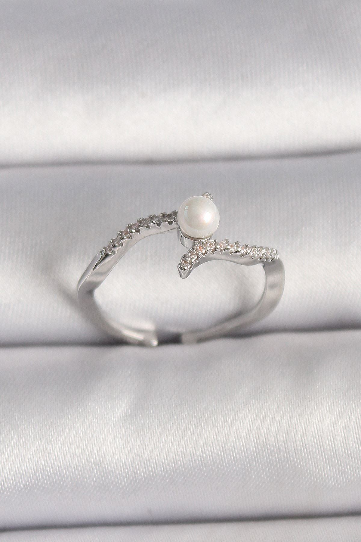 Pirinç Gümüş Renk Zirkon Taşlı Ayarlanabilir Yüzük - TJ-BYK3548