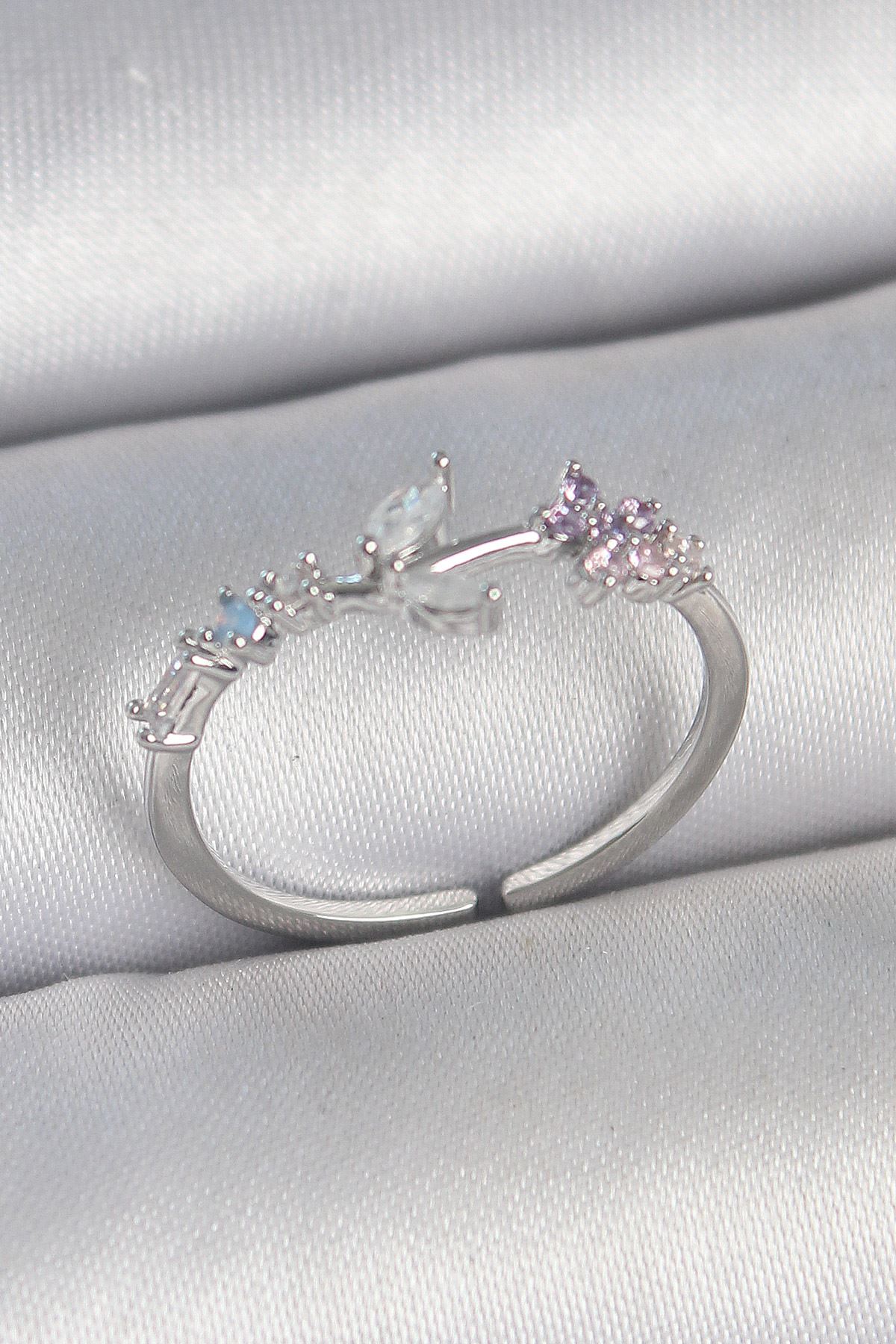 Pirinç Gümüş Renk Zirkon Taşlı Çiçek Model Ayarlanabilir Kadın Yüzük - TJ-BYK3722