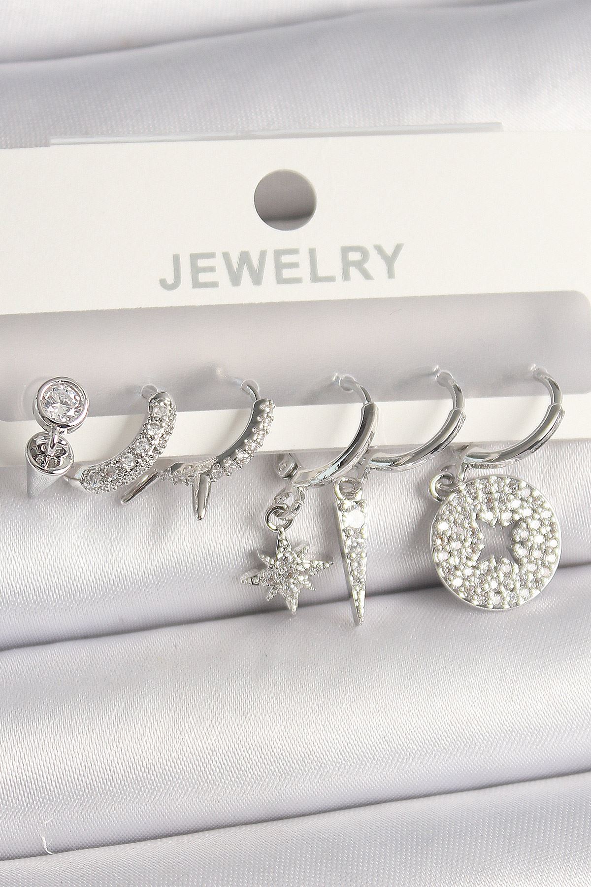 Pirinç Gümüş Renk Zirkon Taşlı Çoklu Figür Kadın Küpe Seti - TJ-BKP10103