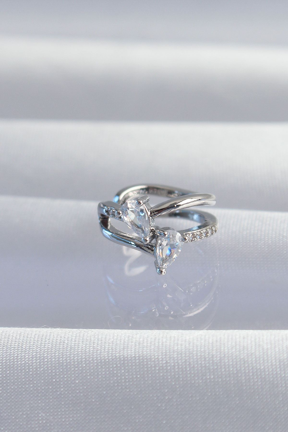 Pirinç Gümüş Renk Zirkon Taşlı Damla Earcuff Küpe - TJ-BKP9334
