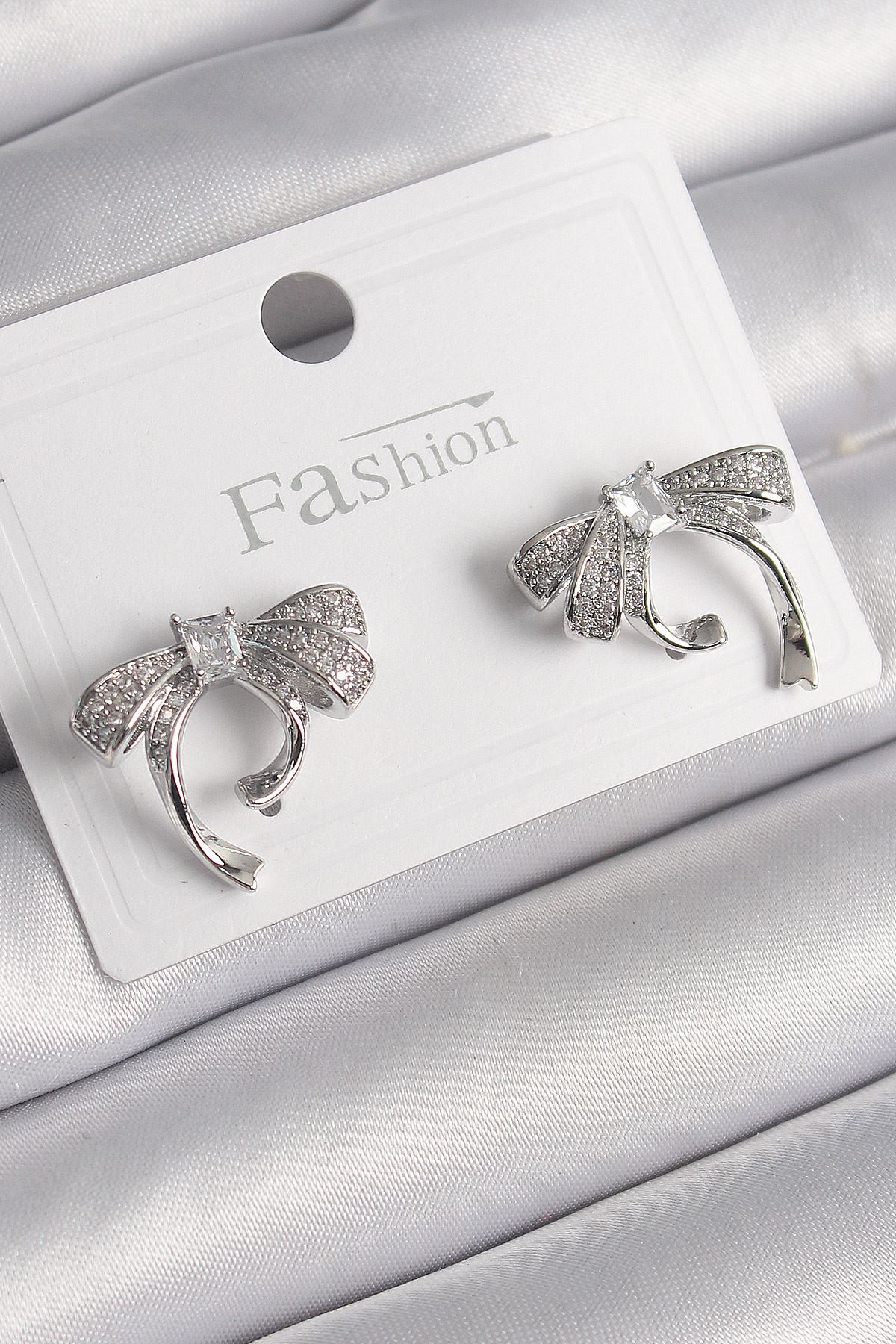 Pirinç Gümüş Renk Zirkon Taşlı Fiyonk Model Kadın Küpe - TJ-BKP10000