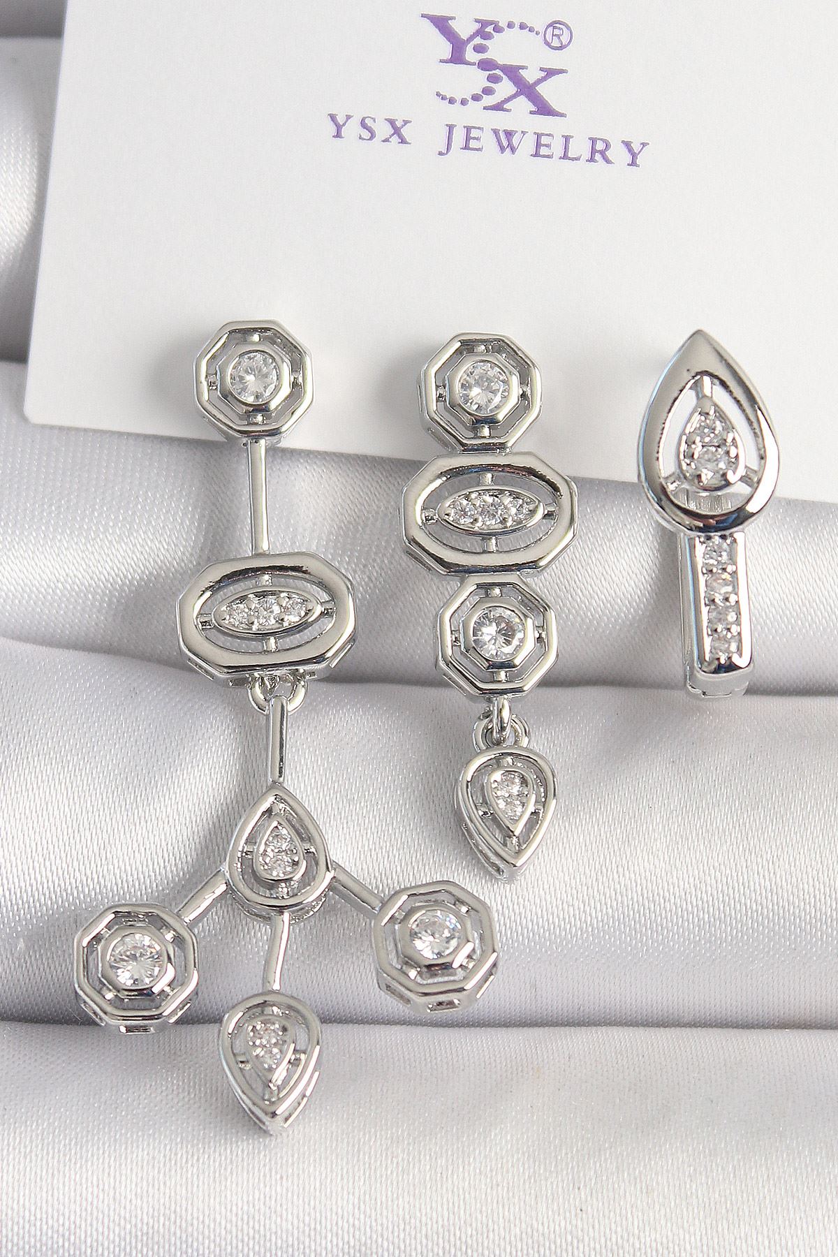 Pirinç Gümüş Renk Zirkon Taşlı Geometrik Model 3'Lü Kadın Kombin Küpe - TJ-BKP10434