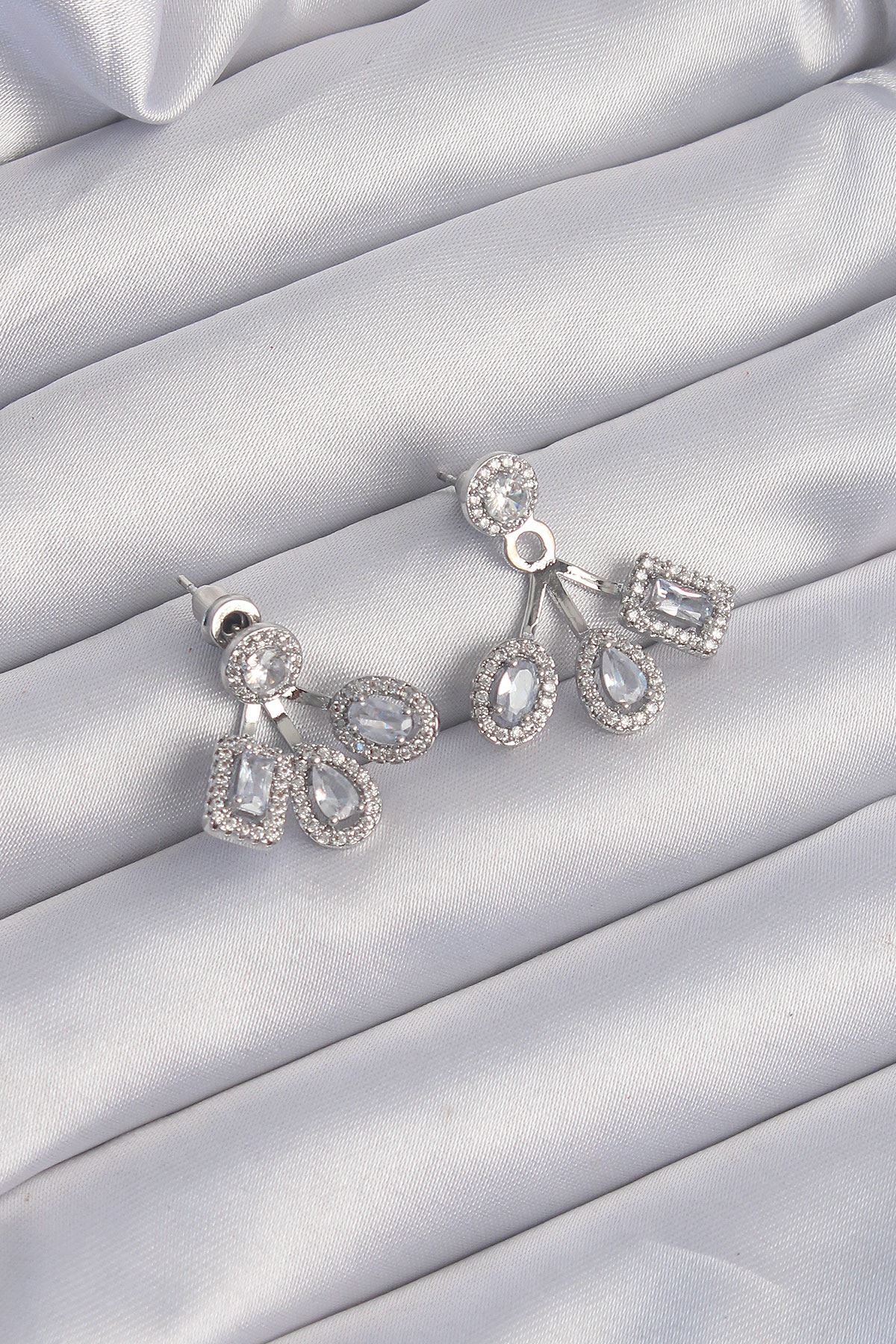 Pirinç Gümüş Renk Zirkon Taşlı Geometrik Model Küpe - TJ-BKP9209
