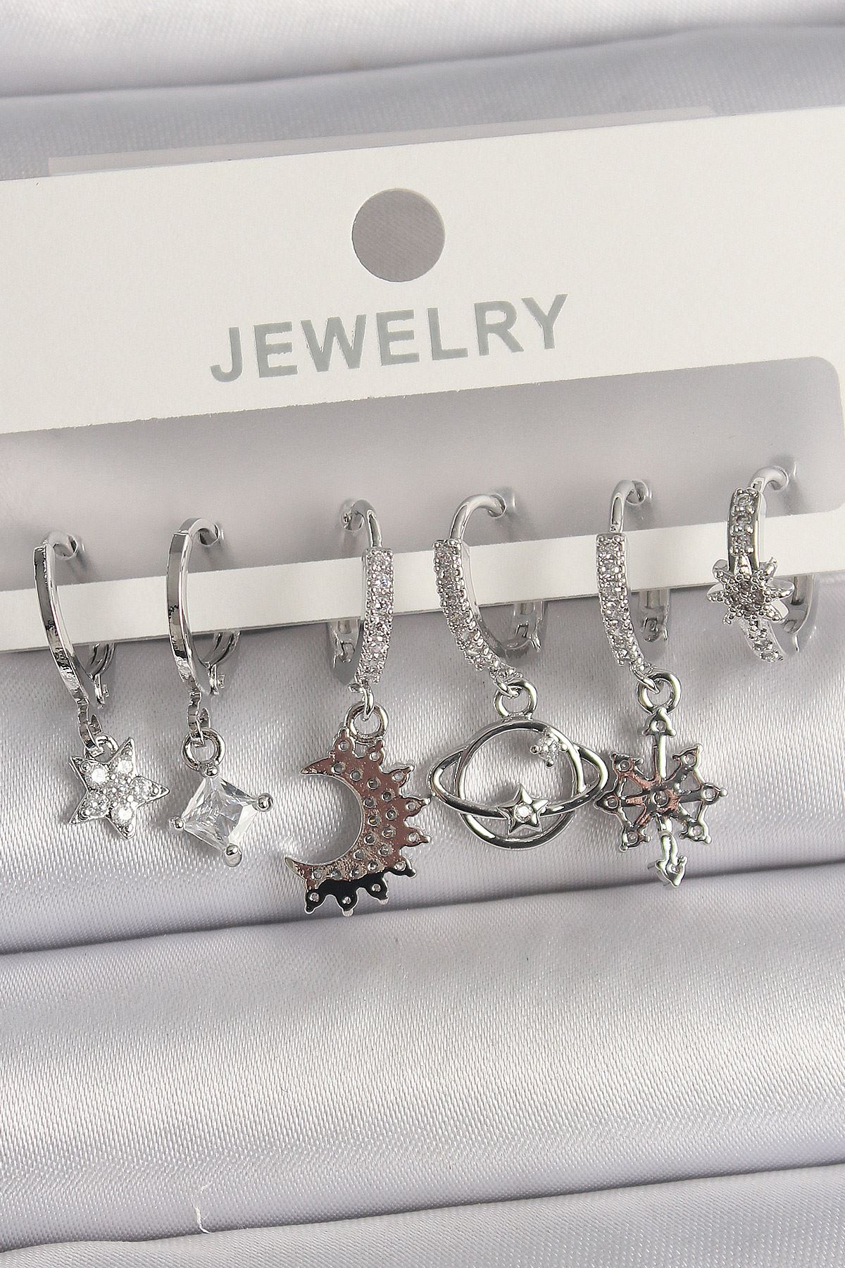 Pirinç Gümüş Renk Zirkon Taşlı Gezgen Model Kadın Küpe Seti - TJ-BKP10113