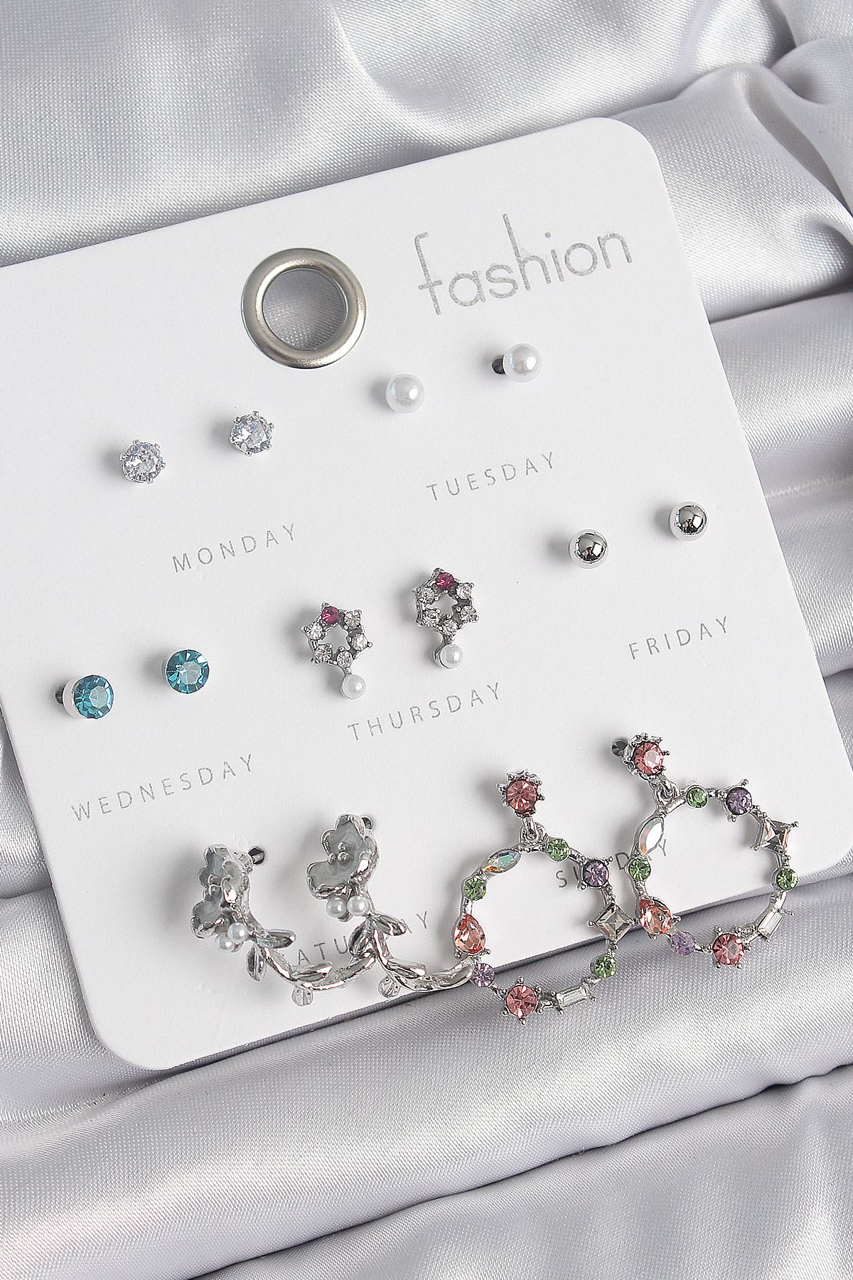 Pirinç Gümüş Renk Zirkon Taşlı Gül Figür Halka Model 7 Çift Kadın Küpe Seti - TJ-BKP10544