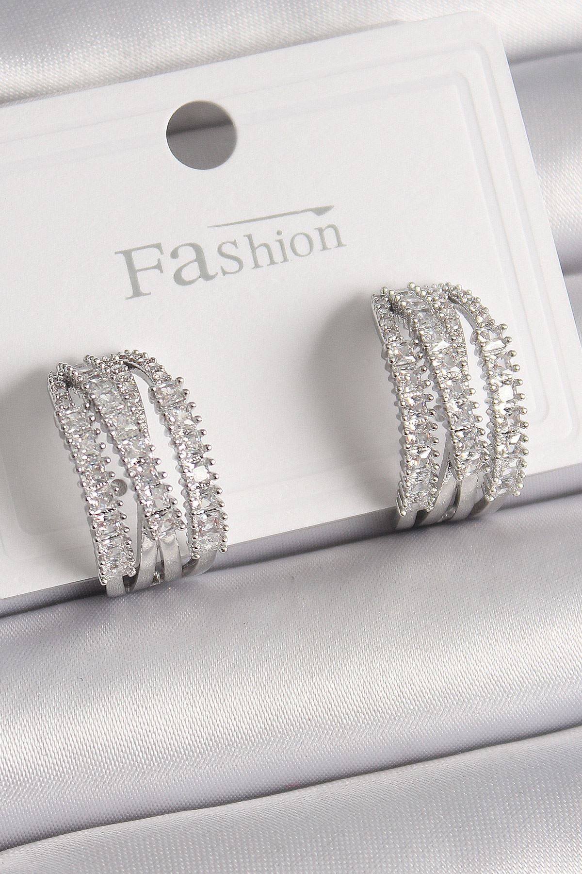 Pirinç Gümüş Renk Zirkon Taşlı X Model Sallantı Detay Kadın Küpe - TJ-BKP9873