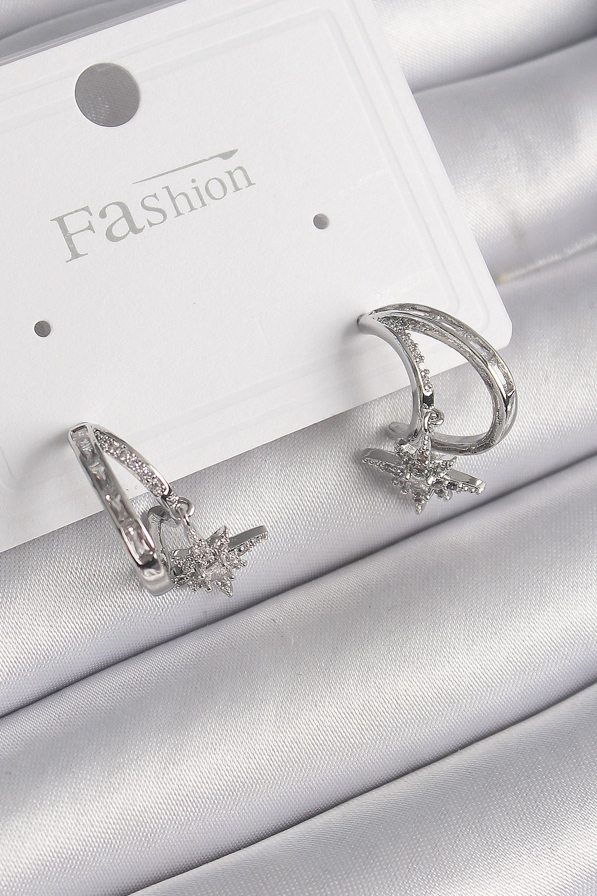Pirinç Gümüş Renk Zirkon Taşlı Halka Model Sallantı Yıldız Detay Kadın Küpe - TJ-BKP9990