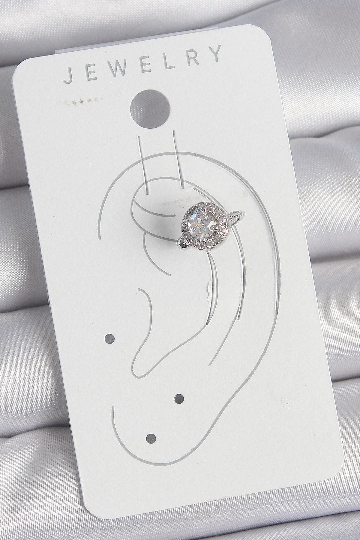 Pirinç Gümüş Renk Zirkon Taşlı Kadın Kıkırdak Model Küpe - TJ-BKP10559